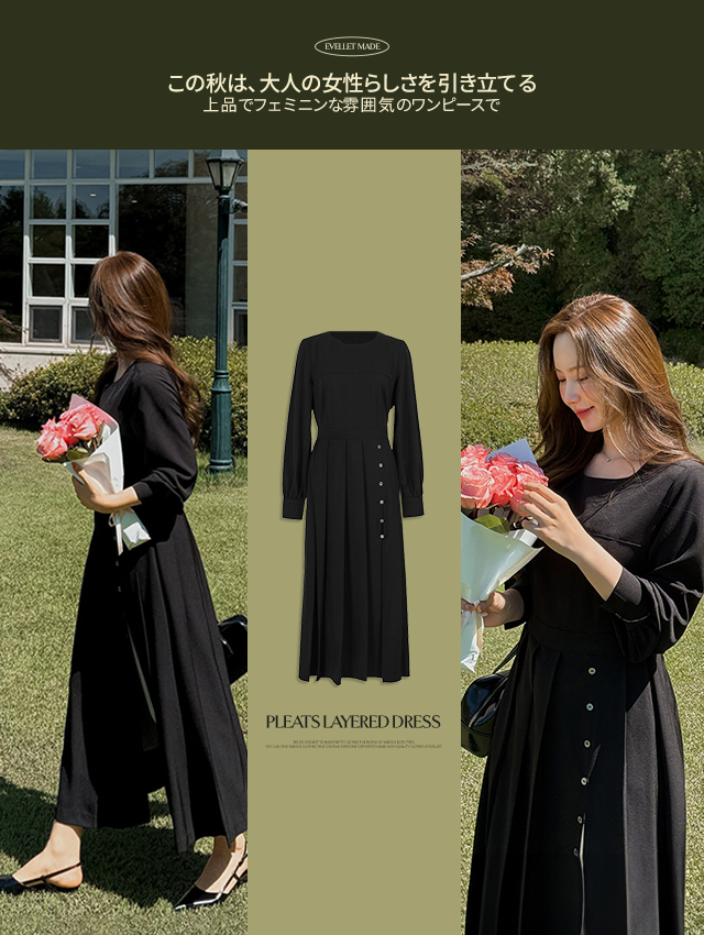 [EVELLET]ピューブン起毛ピンタックストリングロングウエストバンドパンツ