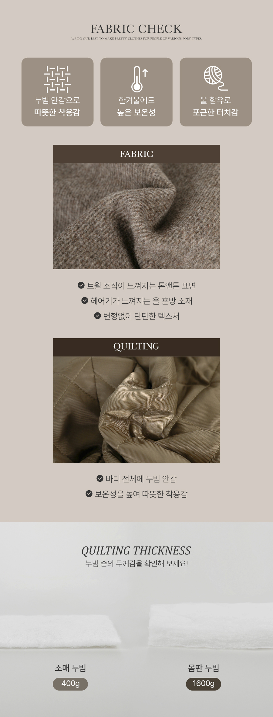 또한 몸 판 누빔 안감은 풍성한 볼륨감으로