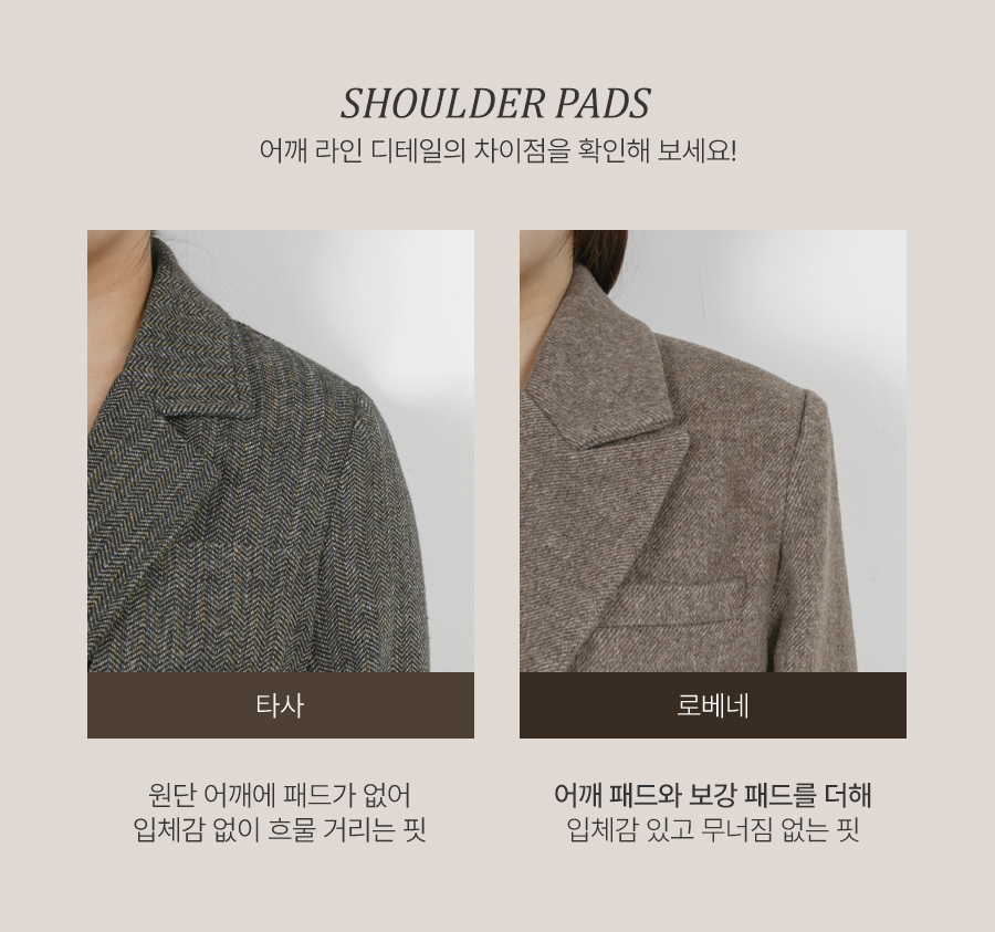 어깨라인이 무너지지 않도록 신경써 주었어요!
