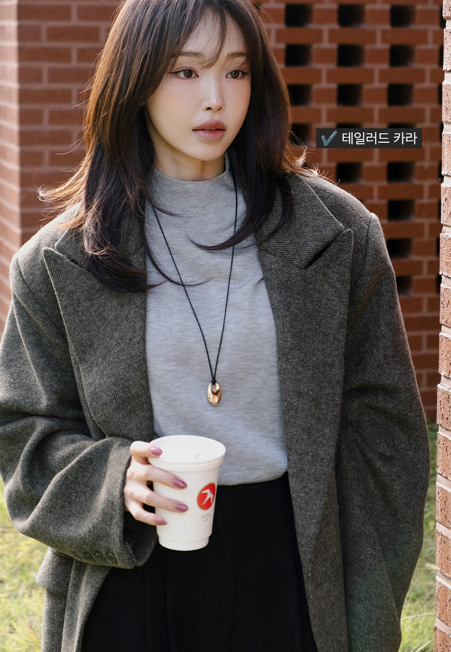 테일러드 카라 디테일로 넓게 잡힌 카라가