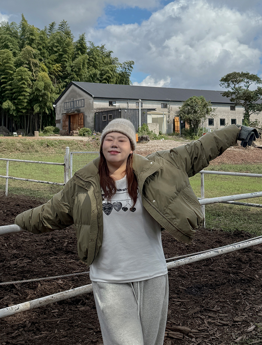 패딩을 걸쳤는데도 둔해 보임 없이