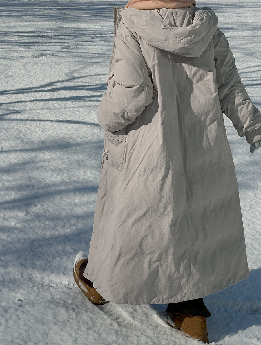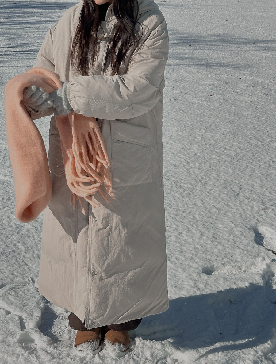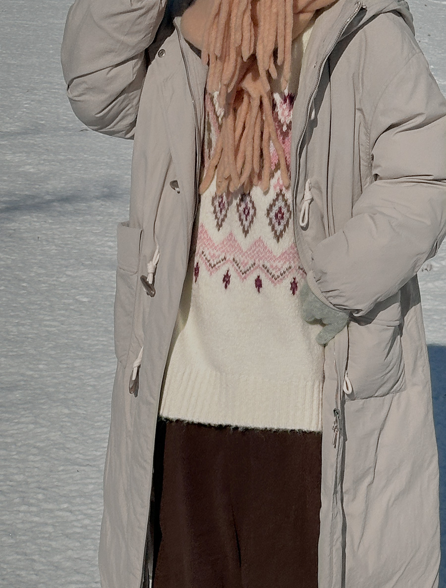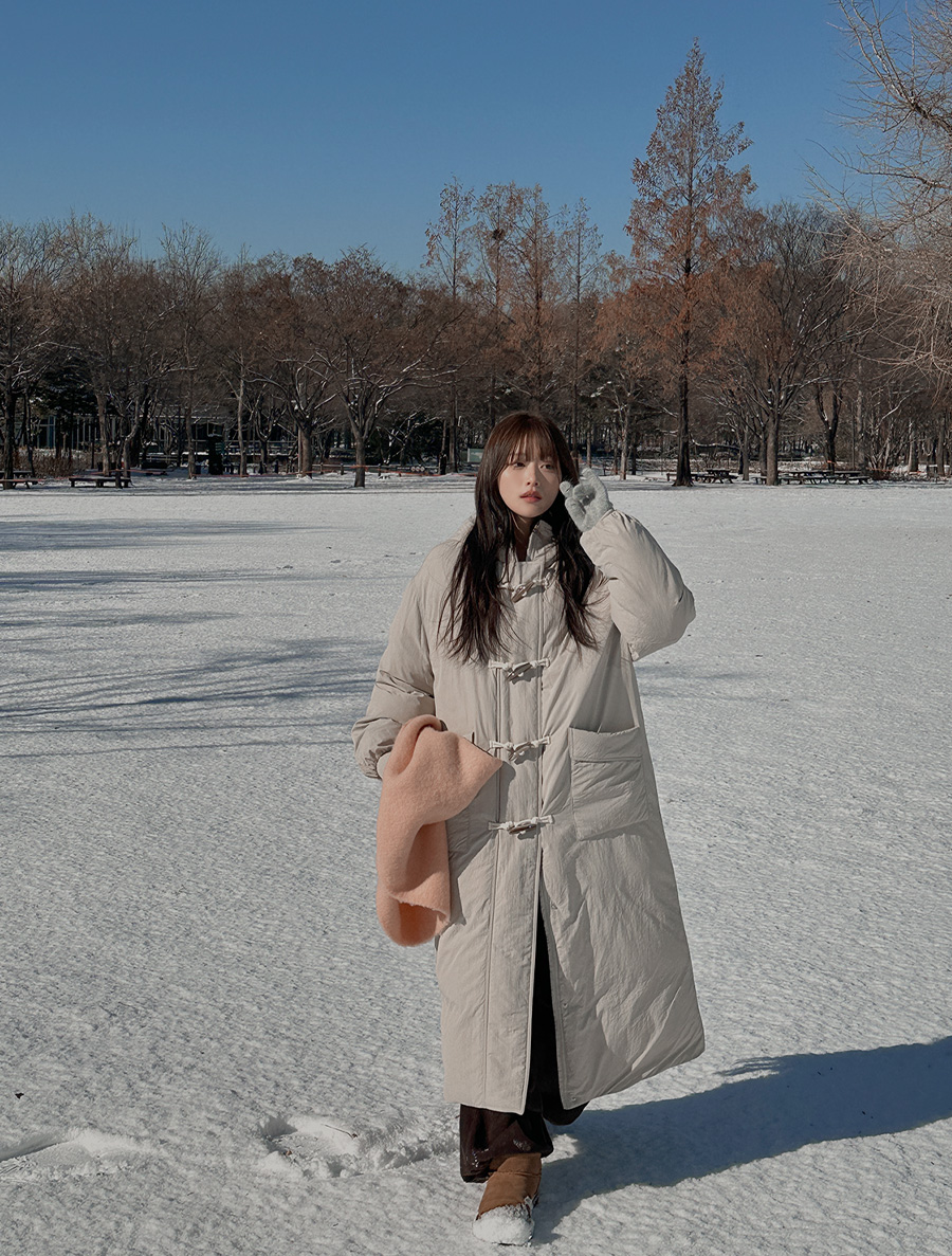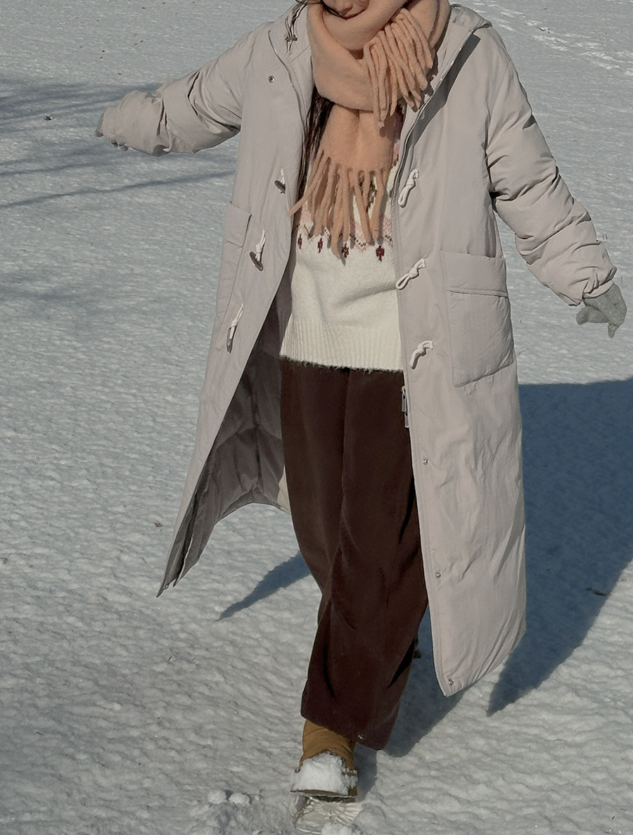 귀여운 요소가 눈에 띄는 롱 패딩을 제작했어요.