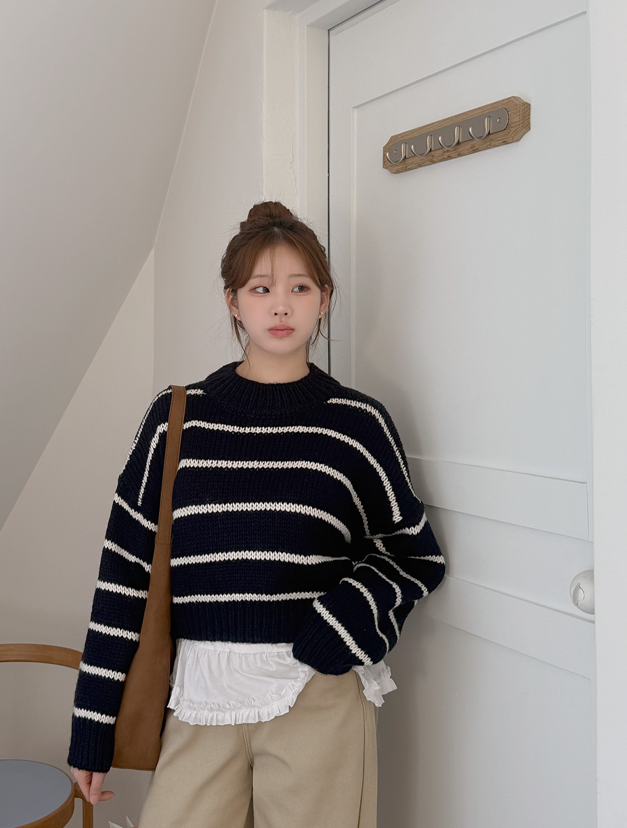 エミューツ配色スタイル クロップドニット 관심상품