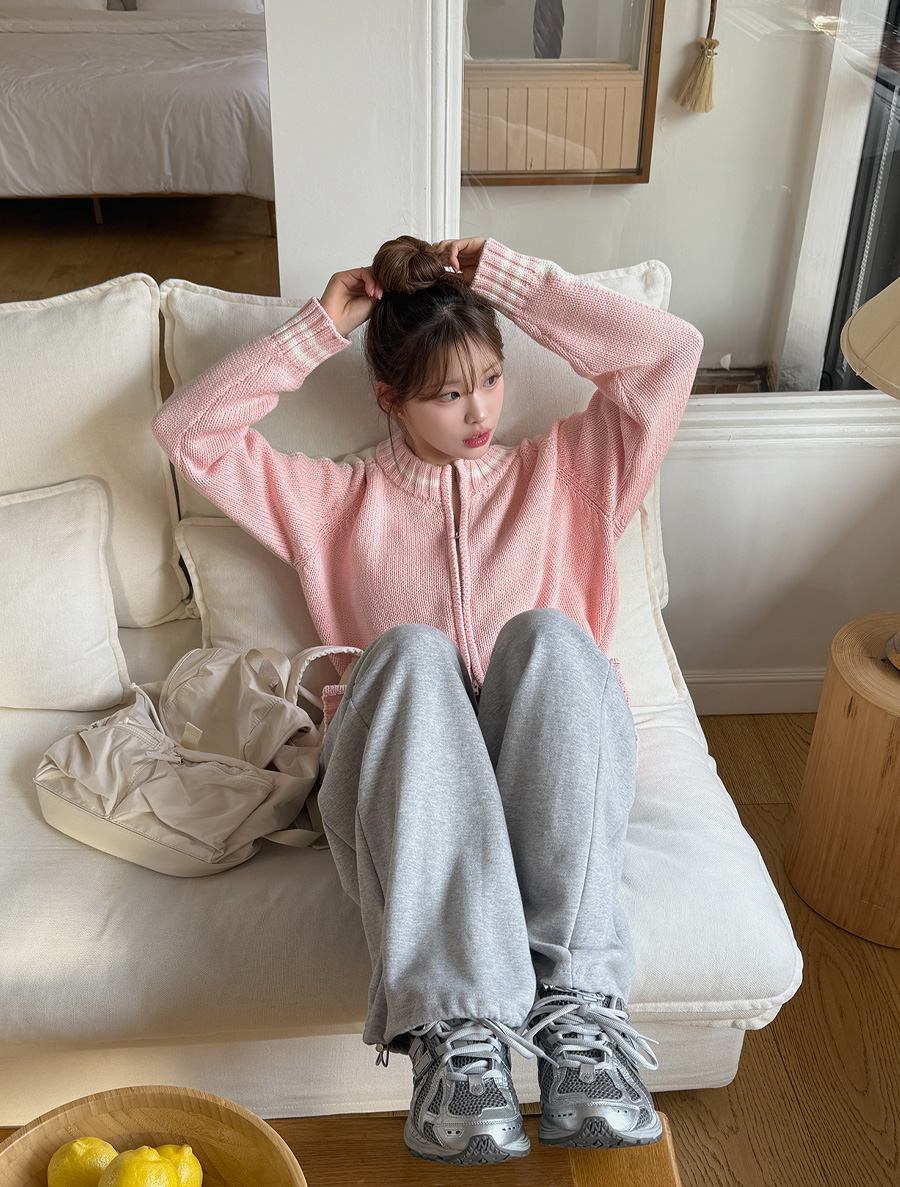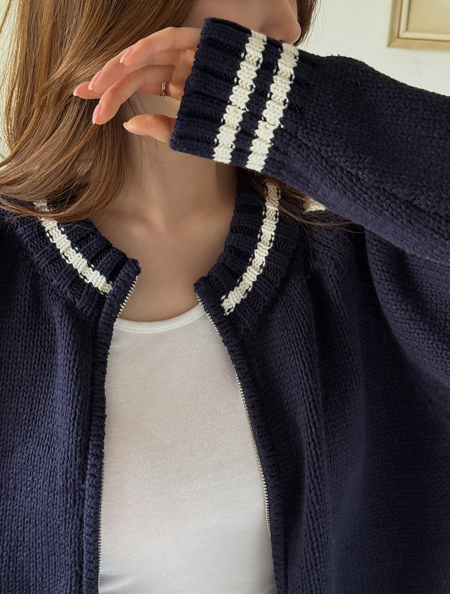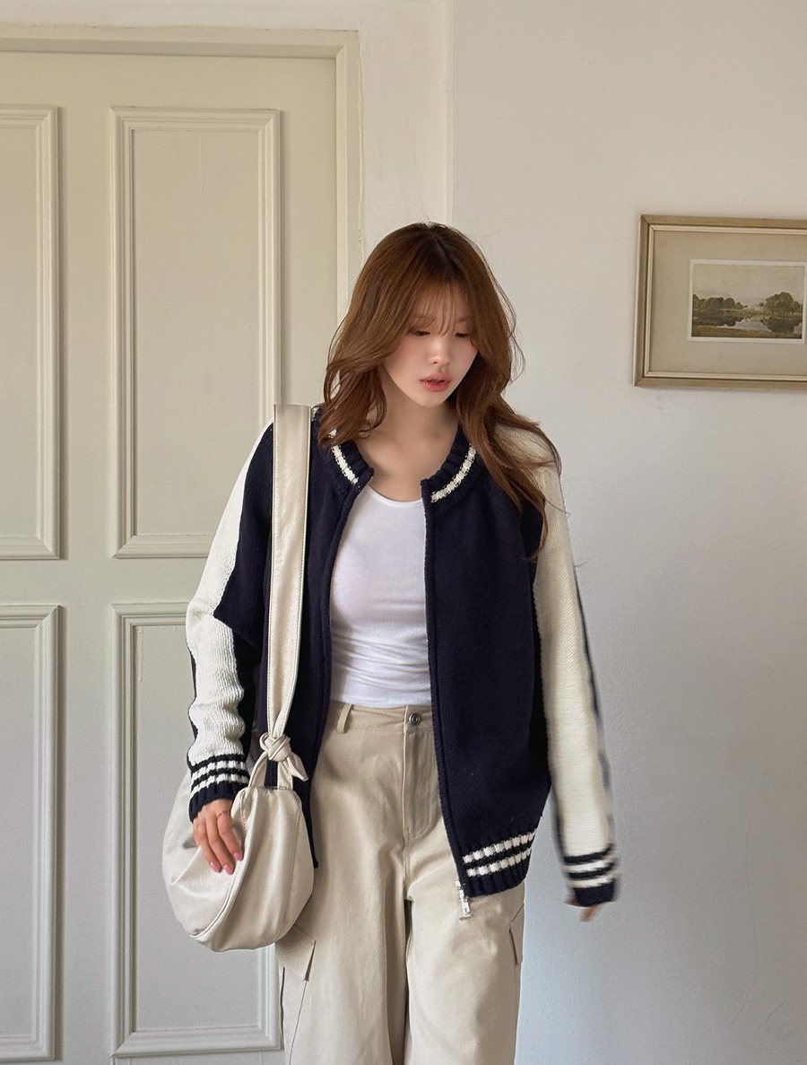 요 니트 집업만 걸쳐줘도 감각적인 룩을 완성되구요.