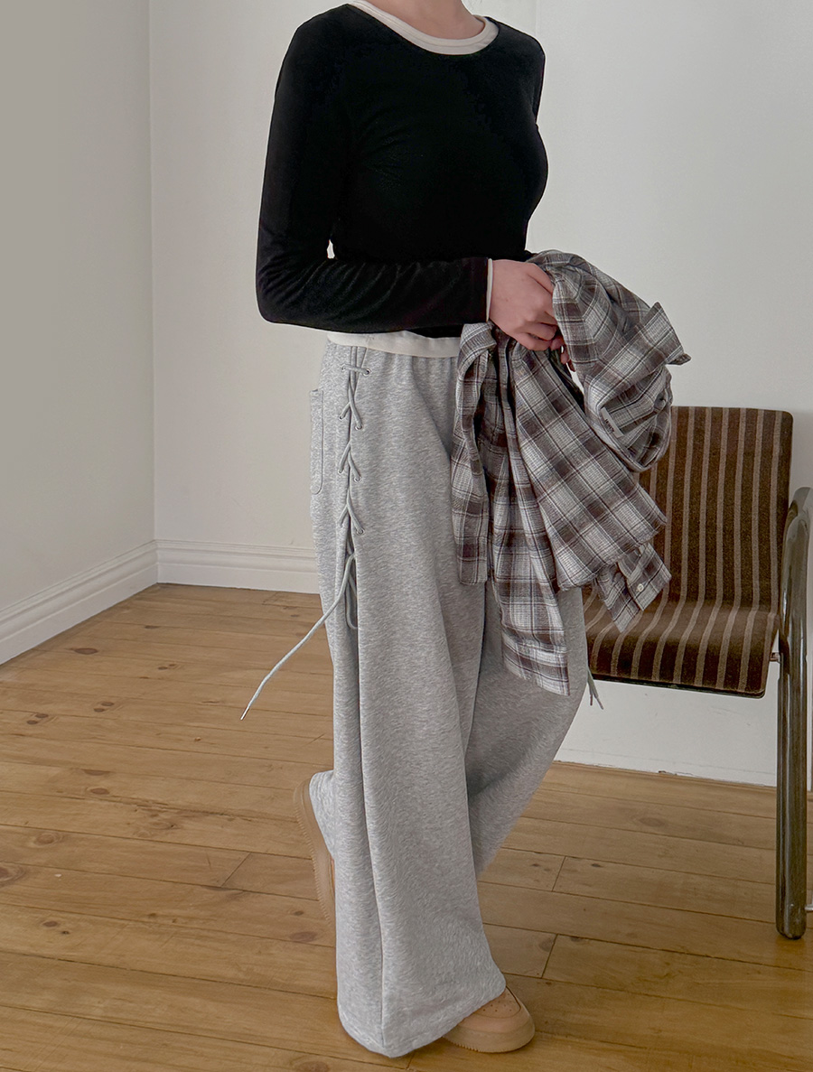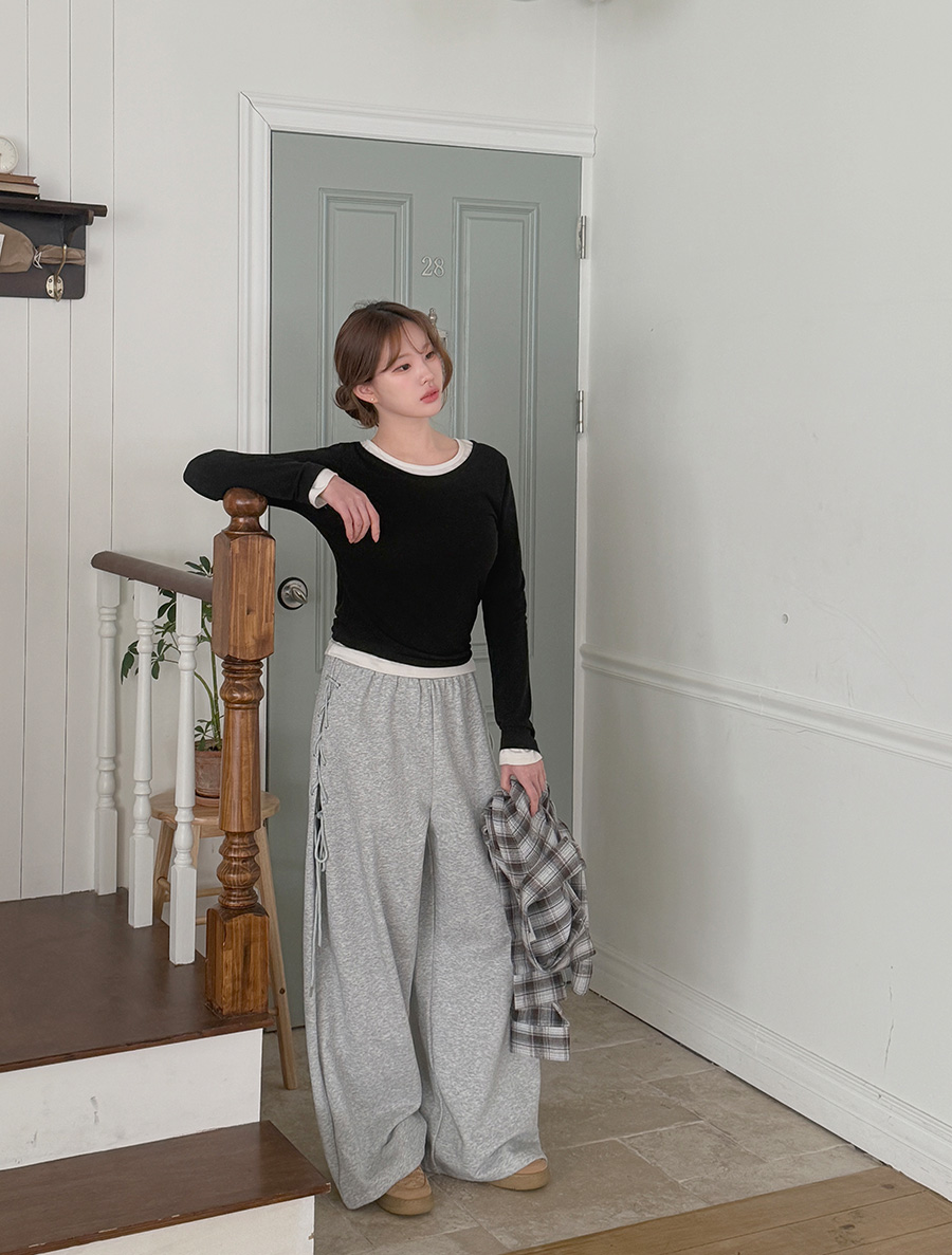 밑단에 스트링 디테일을 추가해 주었는데요.