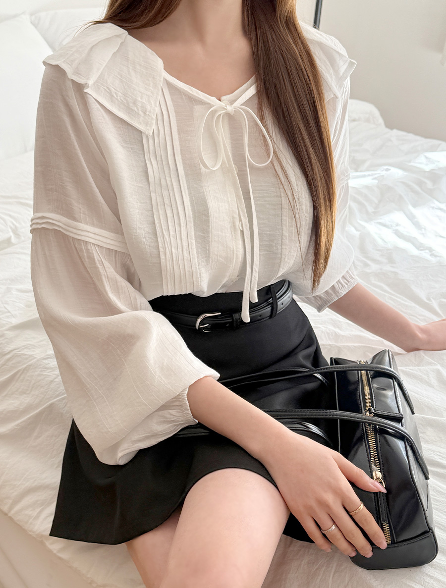 소매 핀턱 아래로 자연스럽게 이어지는