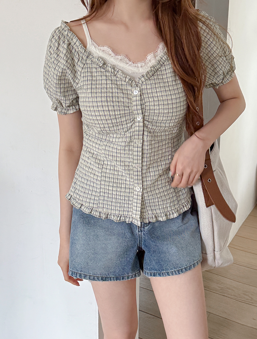 퍼프 소매와 프릴 디테일의 조합이