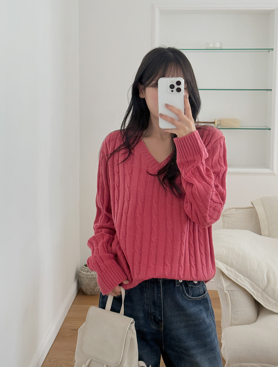 [EVELLET]ポーラーエンブイネッククルーラーニット 관심상품