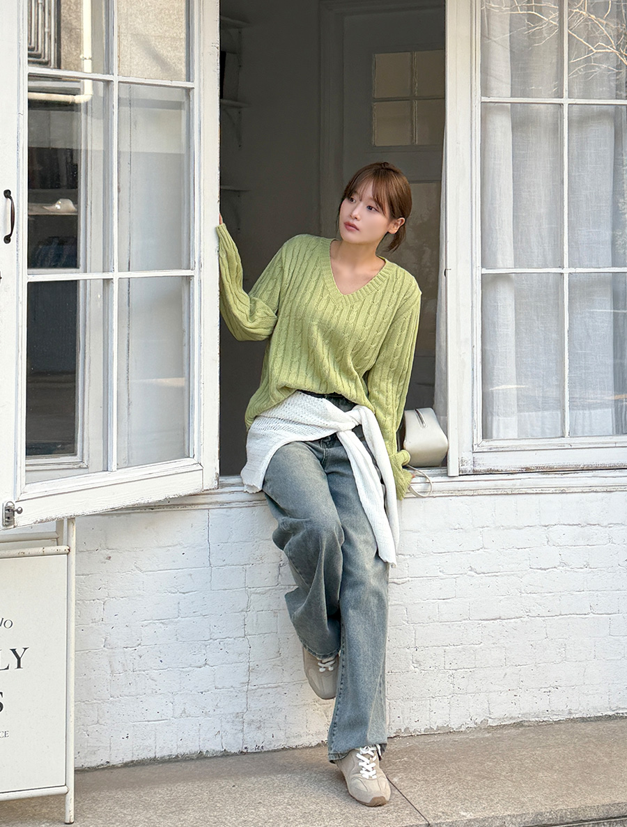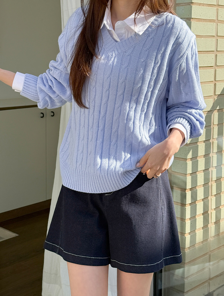 깔끔하게 떨어지는 V넥 라인으로