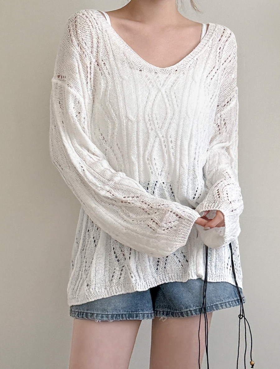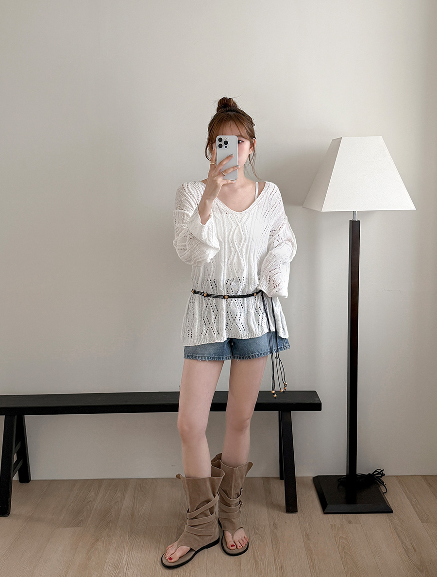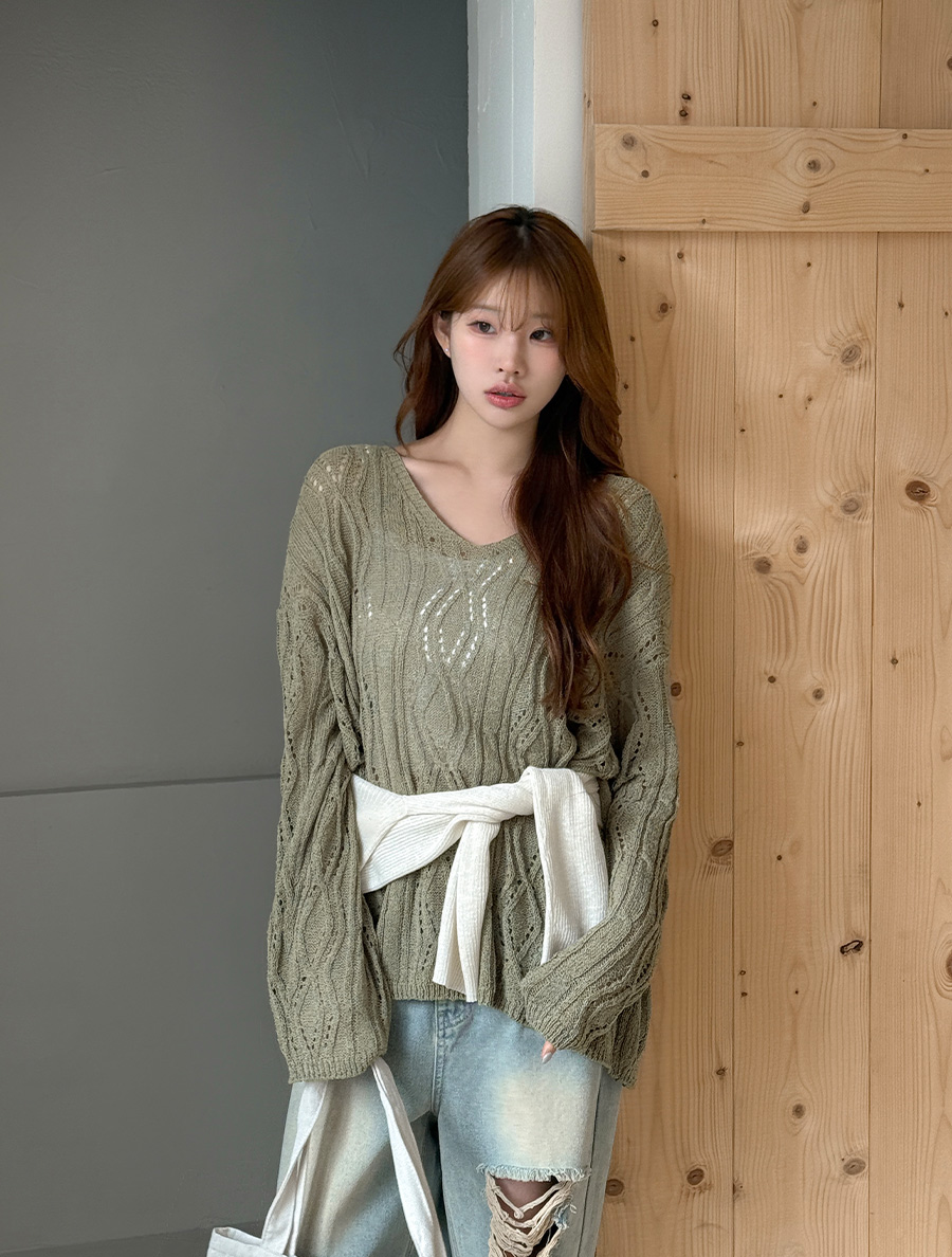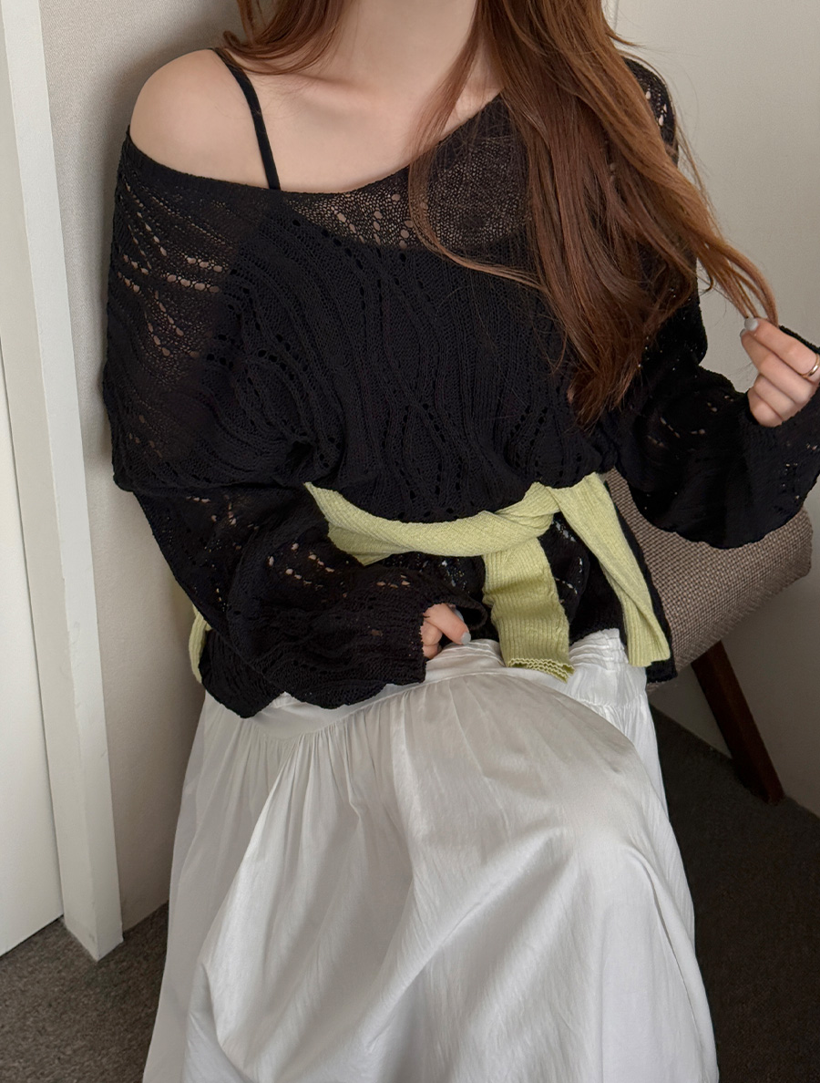 [EVELLET]スカーディパンチングストラップニット