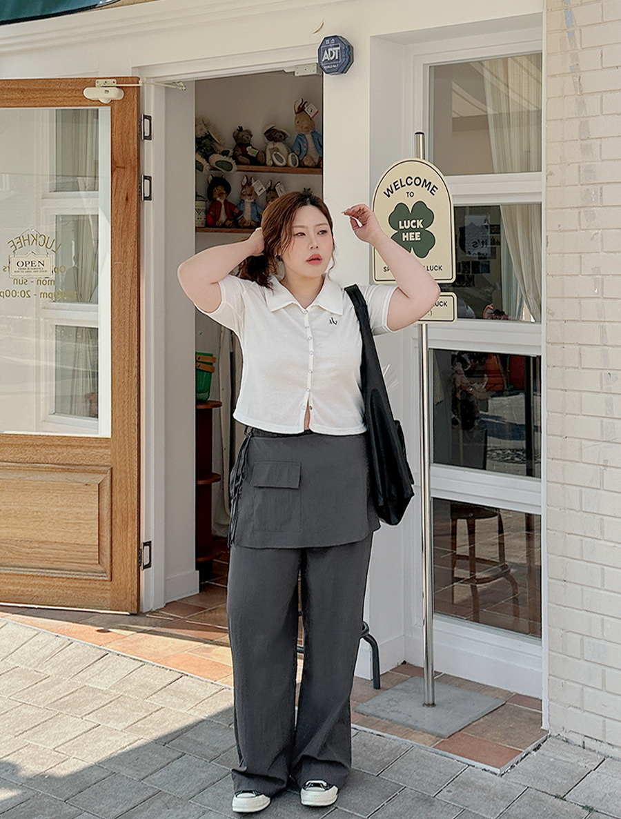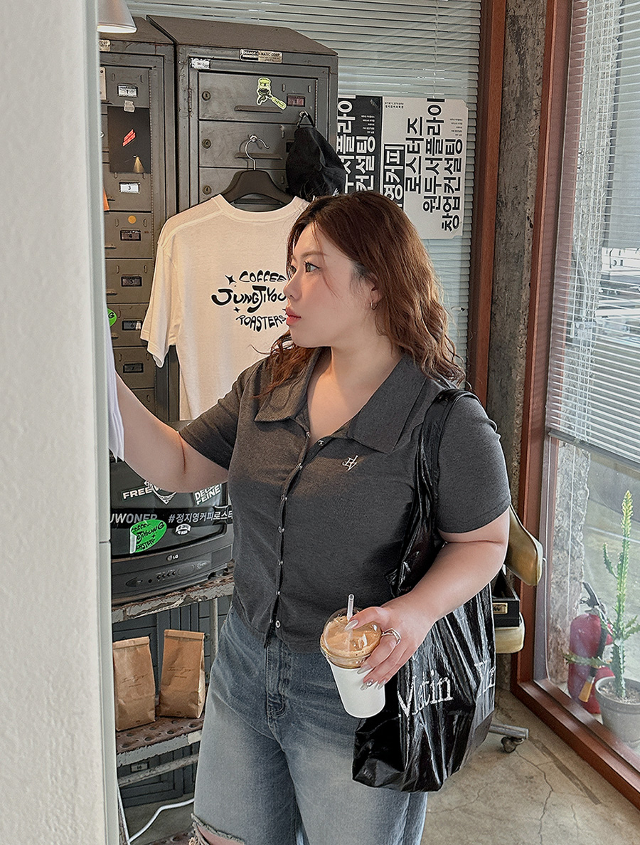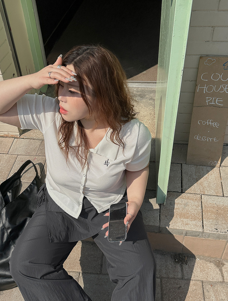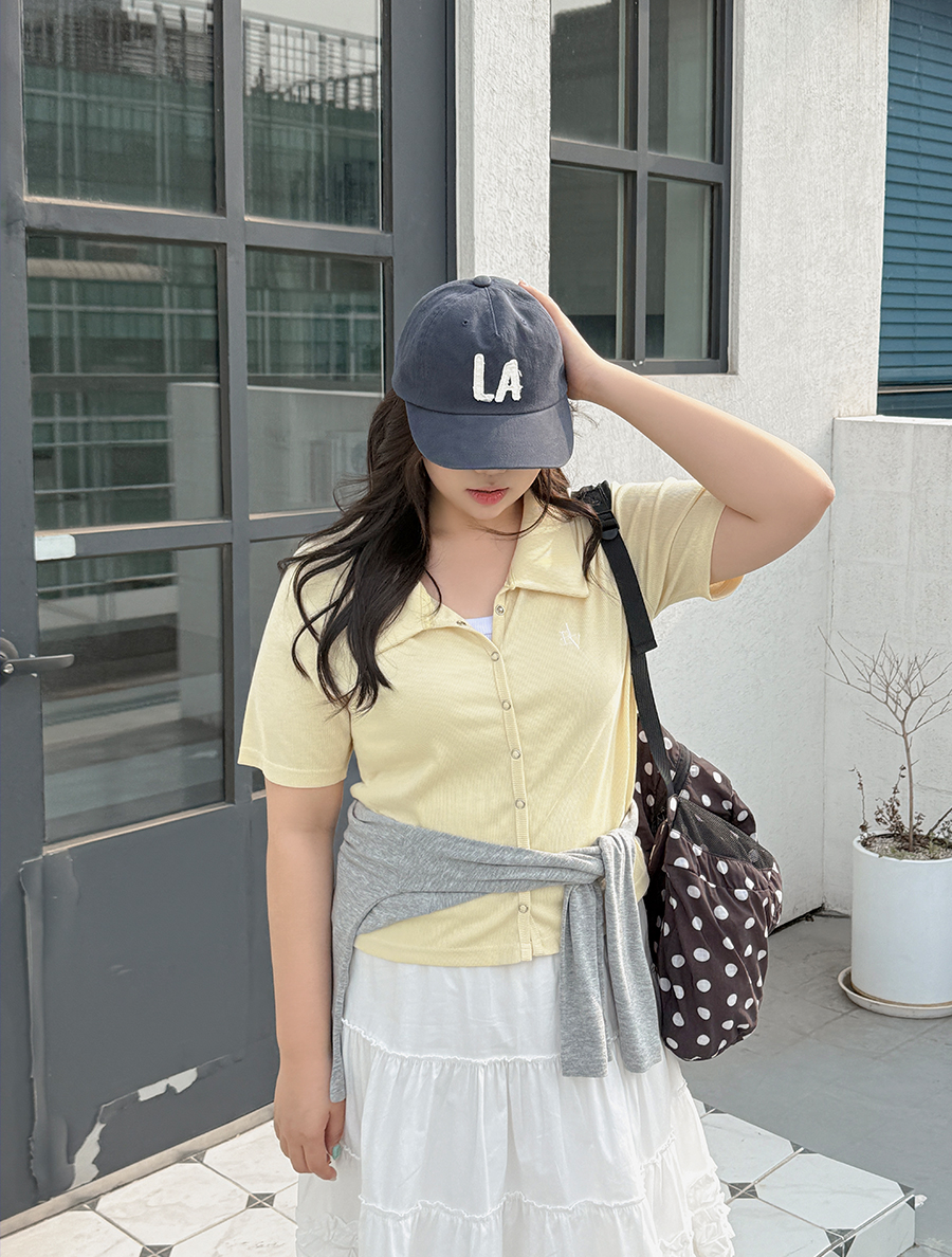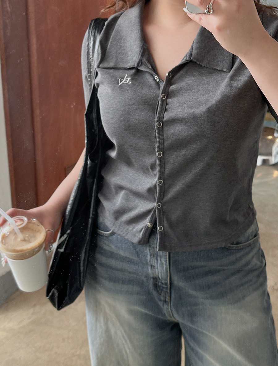 [EVELLET]オピュアムービーエン刺繍カラーボタンティーシャツ