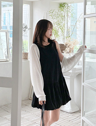 [EVELLET]フロッピーレイヤードバルーンミニワンピース