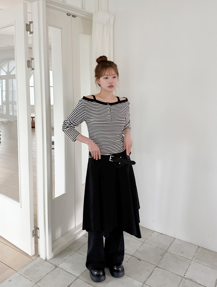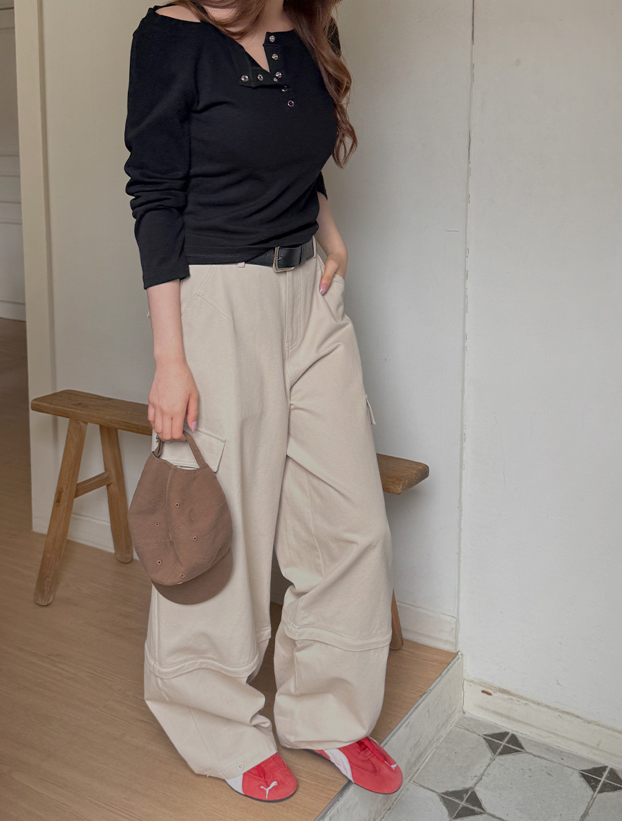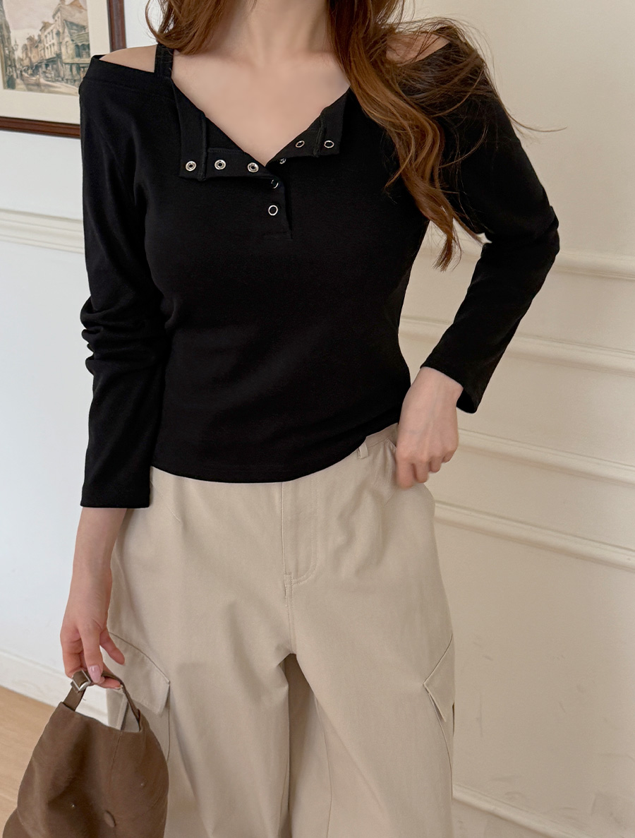 [EVELLET]デルニブオフショルダーボタンティーシャツ
