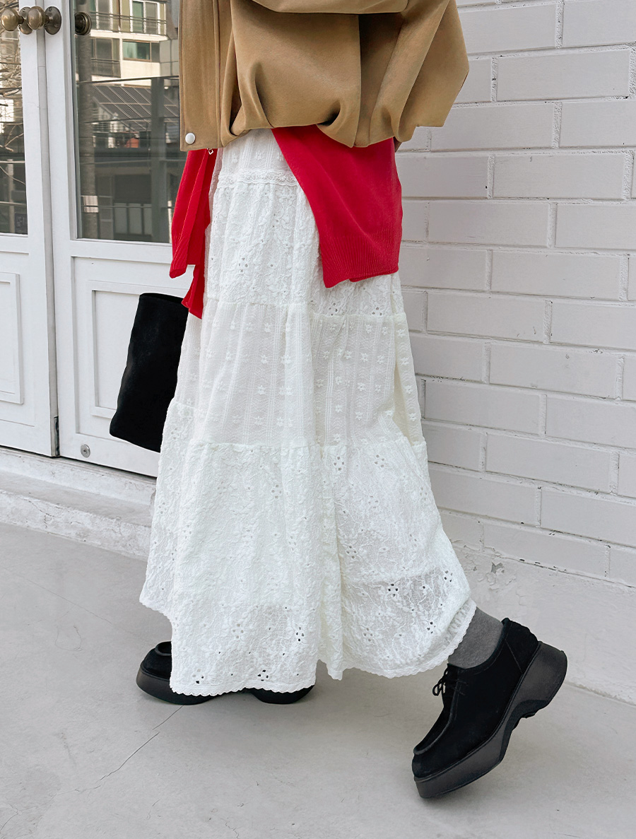 [EVELLET]ニュープレンレースウエストバンドロングスカート