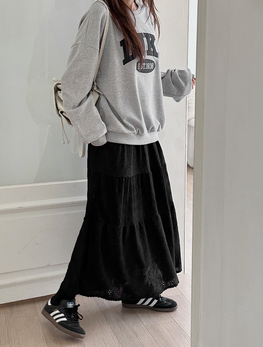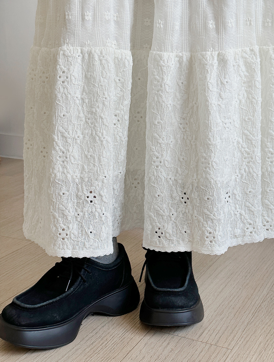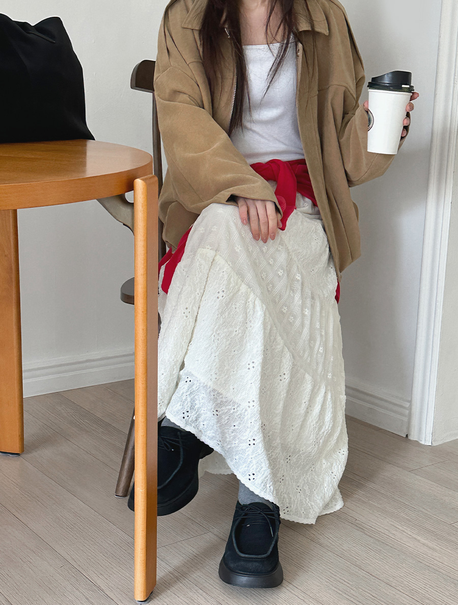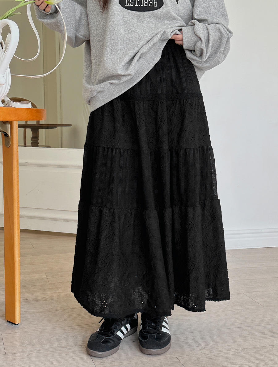 [EVELLET]ニュープレンレースウエストバンドロングスカート