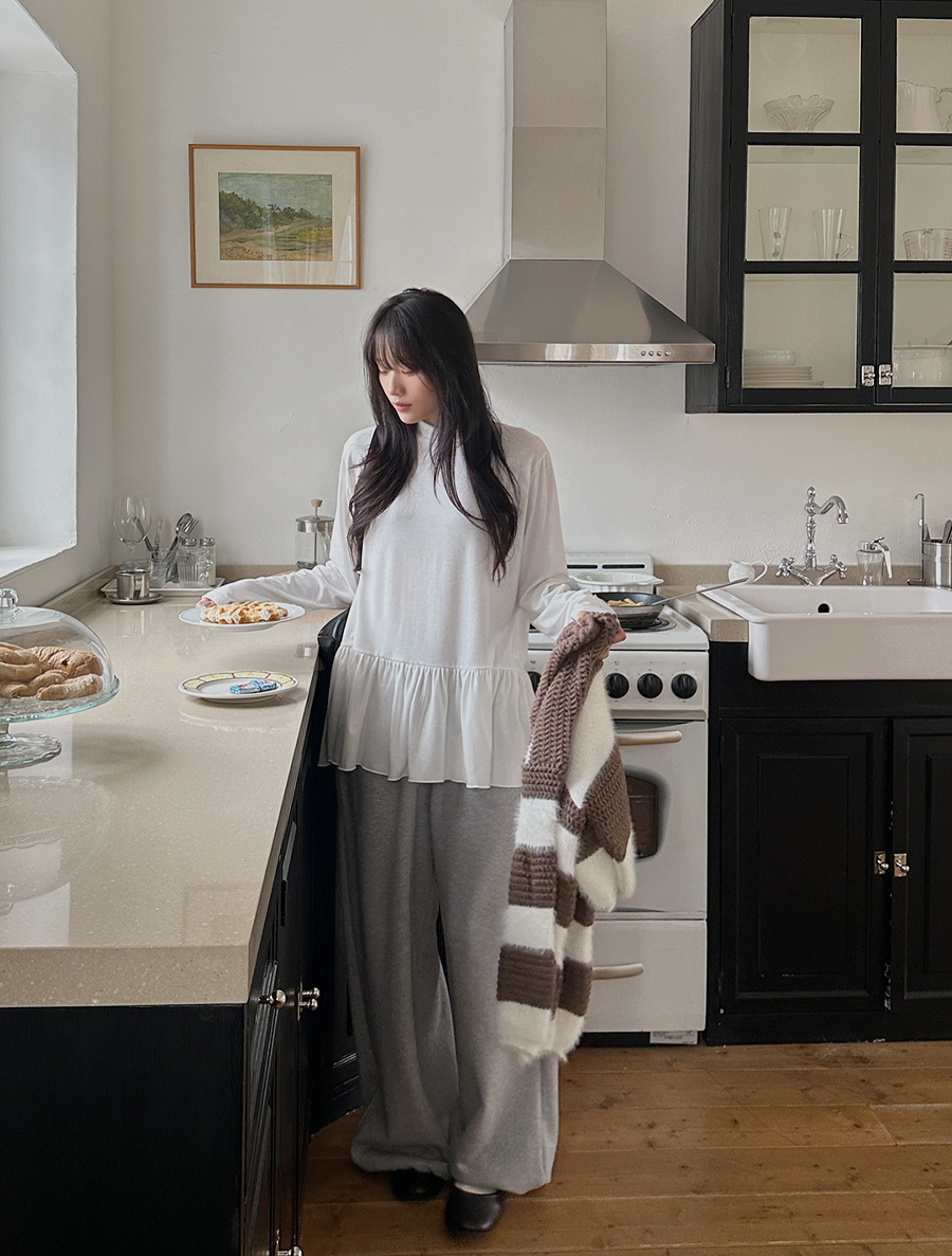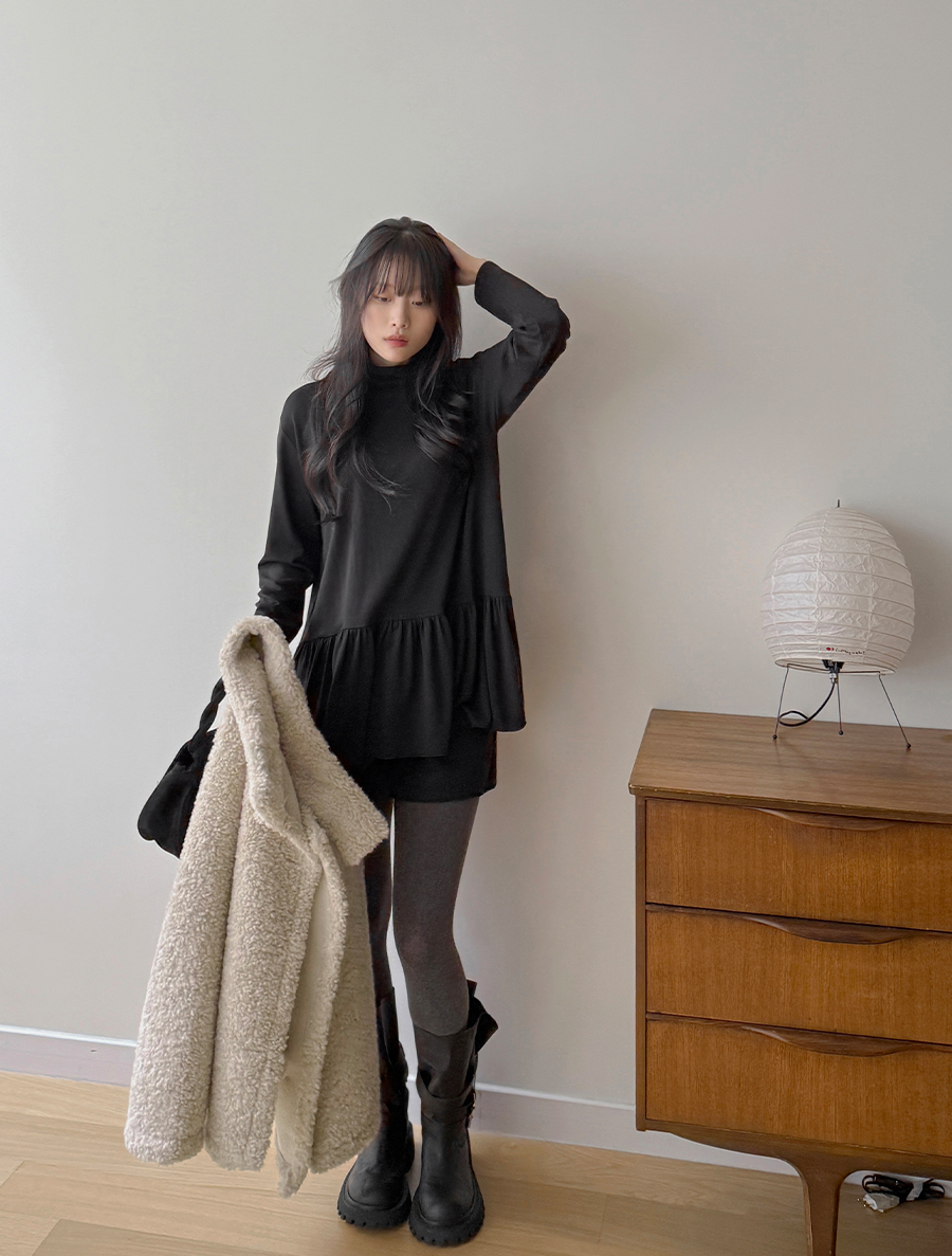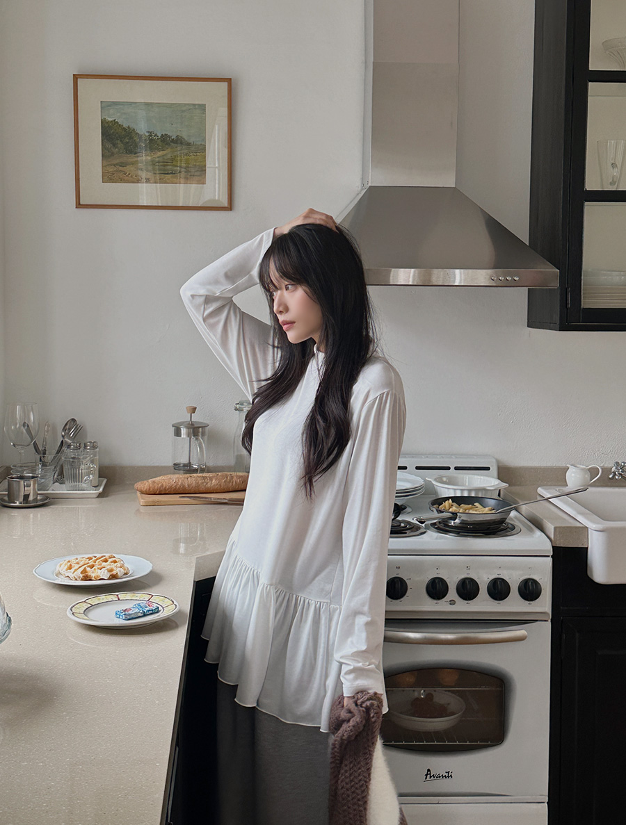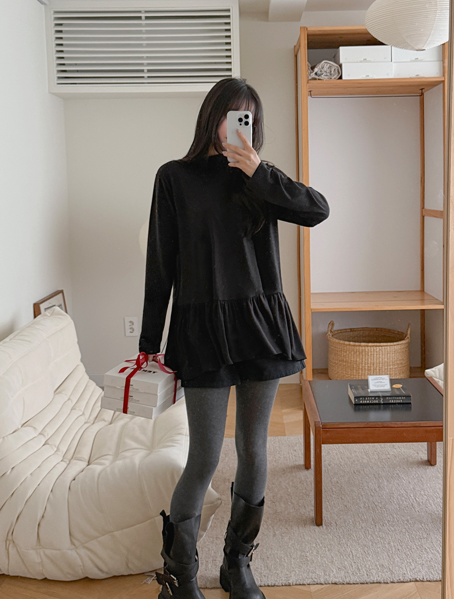シレンプ起毛 フリル レイヤードティーシャツ
