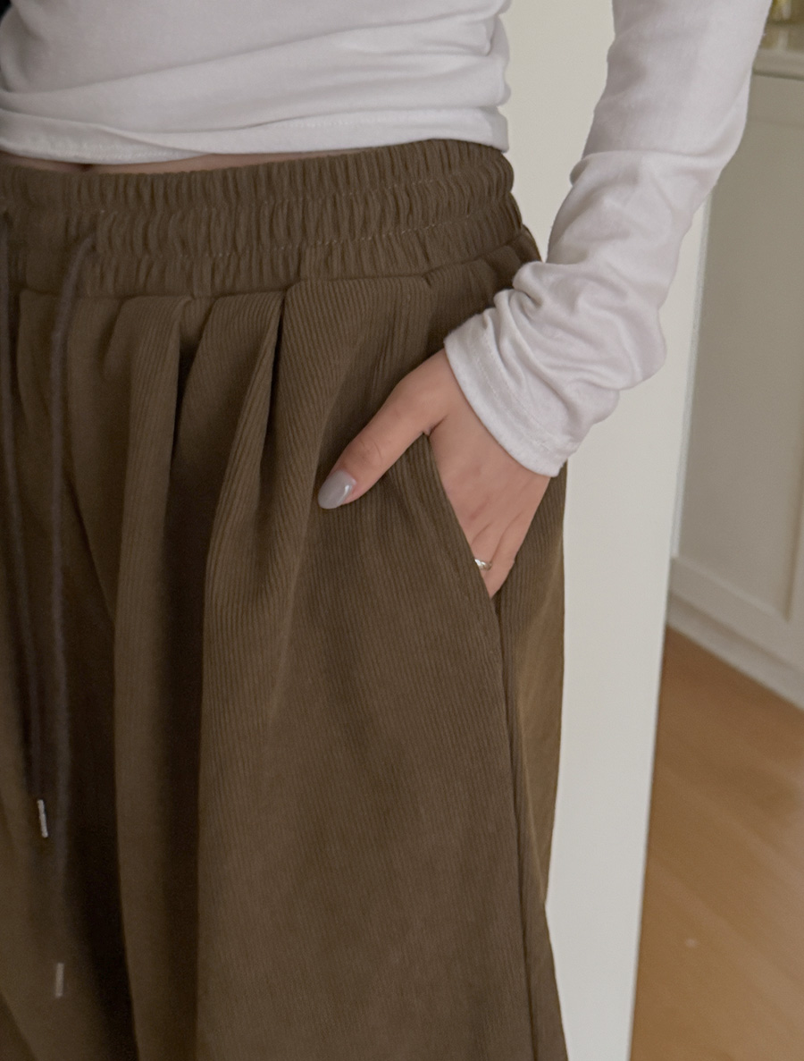 ミューネンティ長さ別ピンタックコーデュロイユンギモウエストバンドパンツ