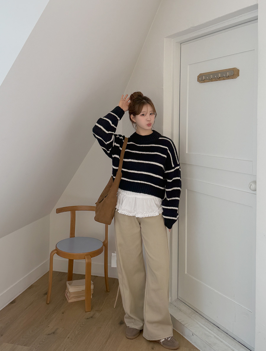 ツリエ長さ別起毛ワイド切開コットンパンツ