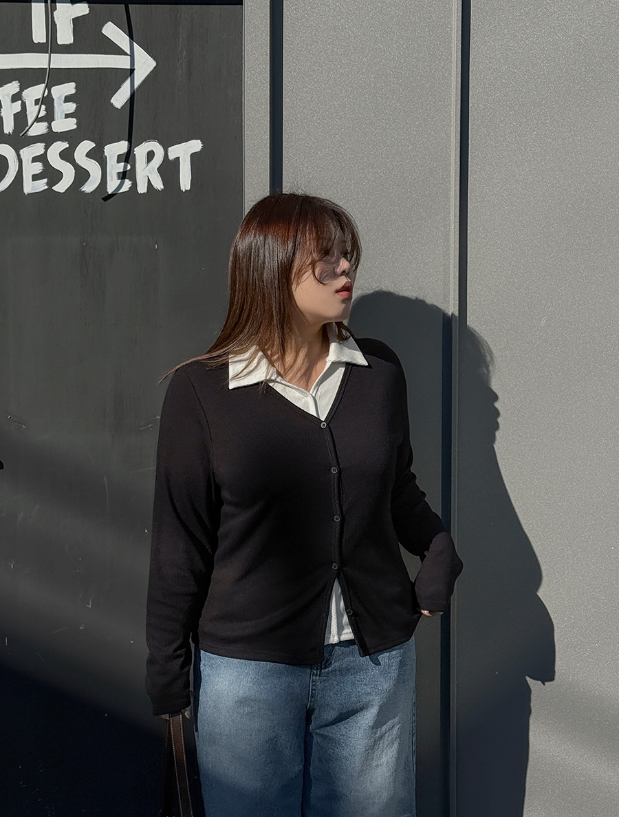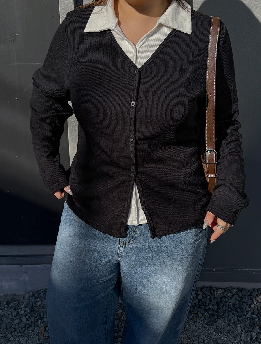 ドピオン配色レイヤードボタンカラーティーシャツ