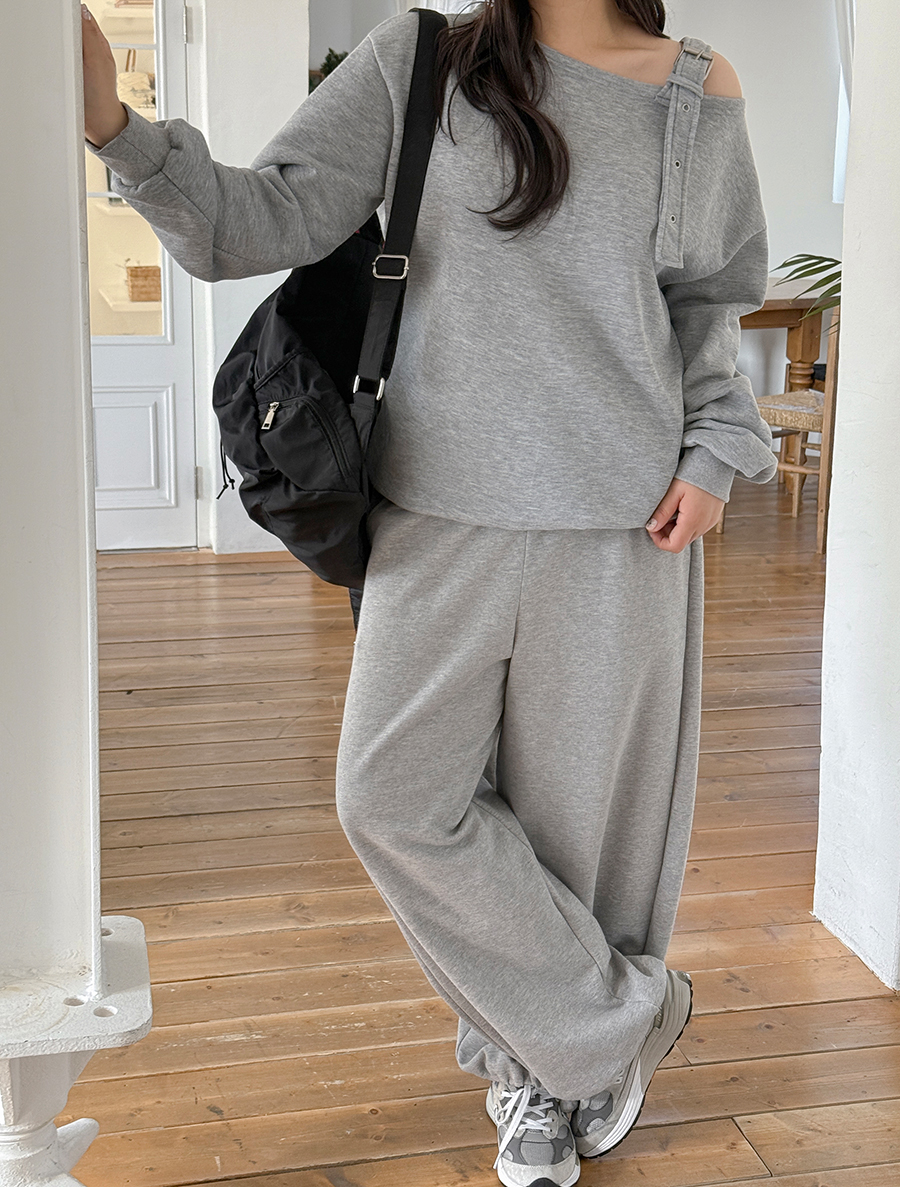 [EVELLET]ドヘンブ起毛オフショルダールーズフィットバックルカットソー