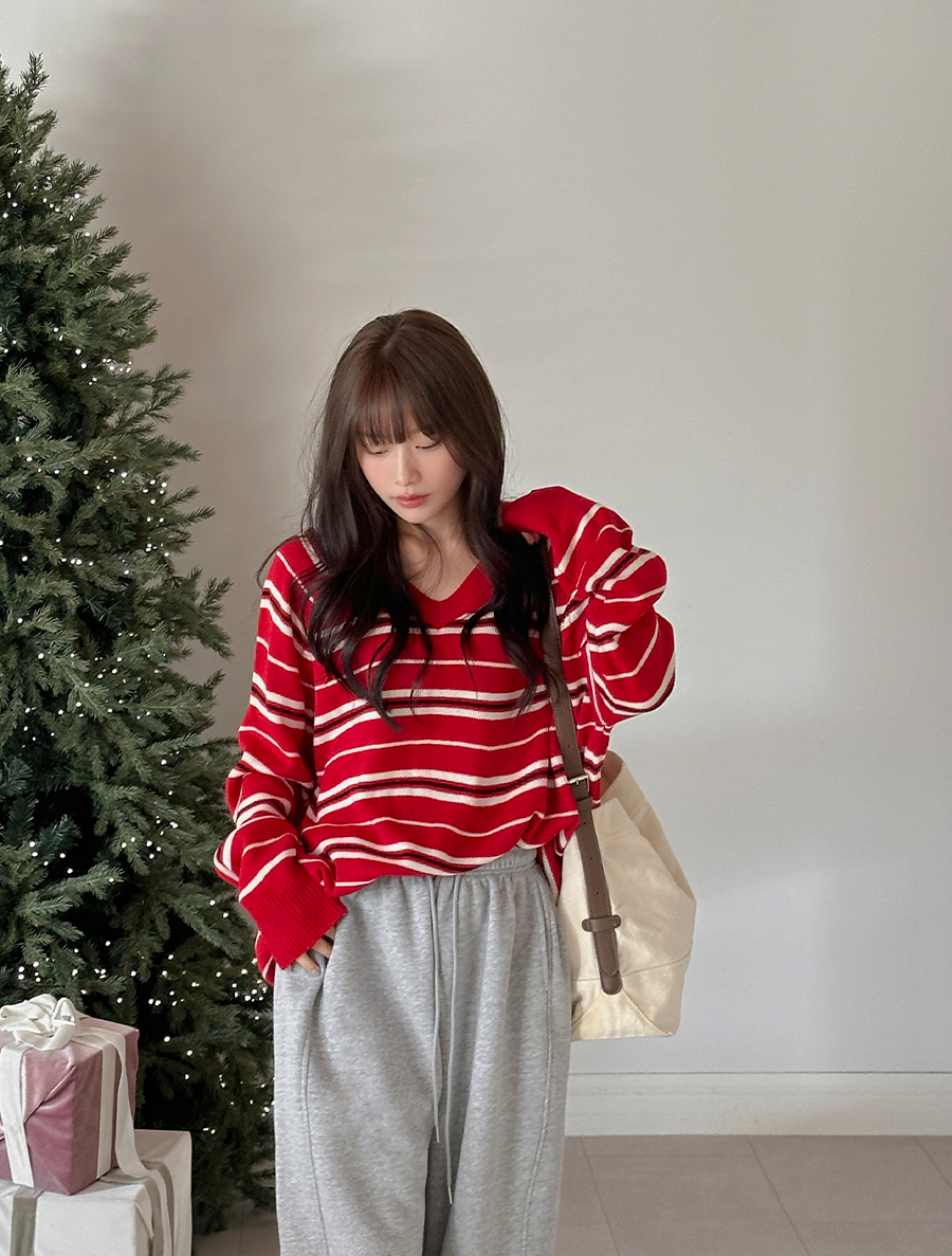パプレンスタイル配色Vネックニット