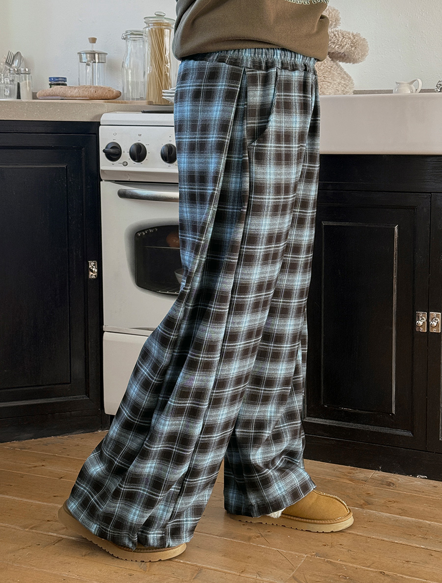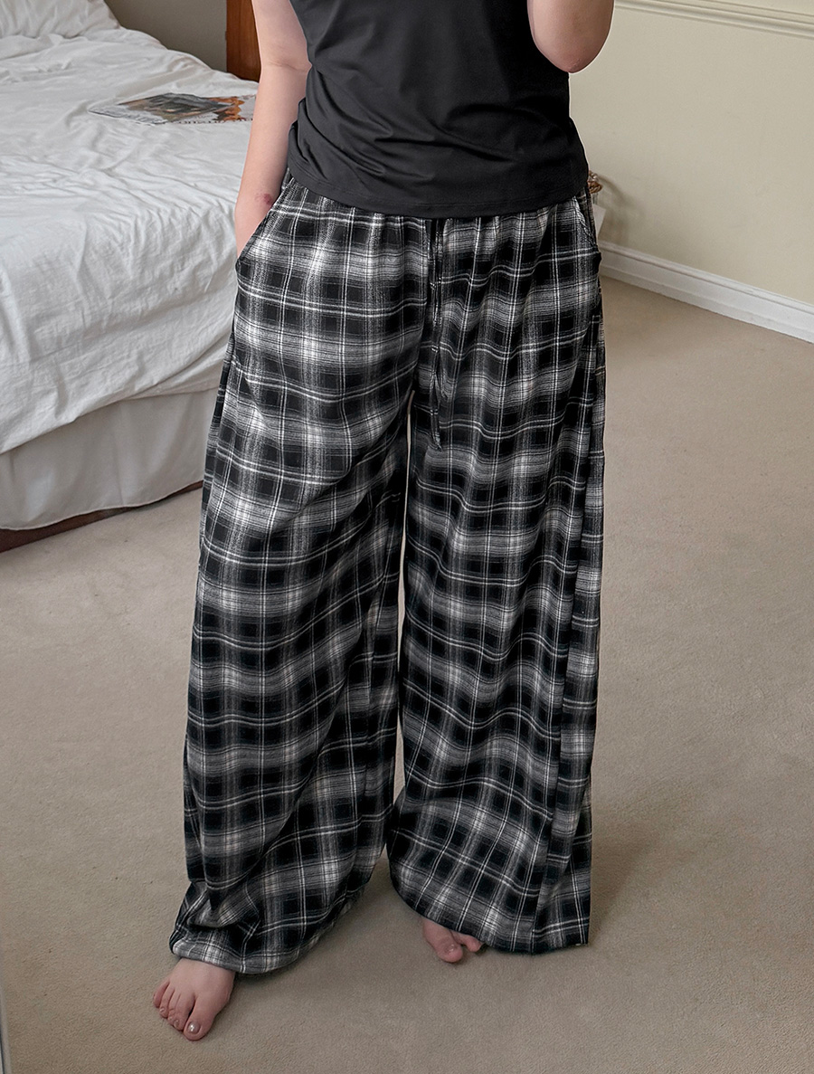 ペンアーティチェックストリングロングウエストバンドパンツ