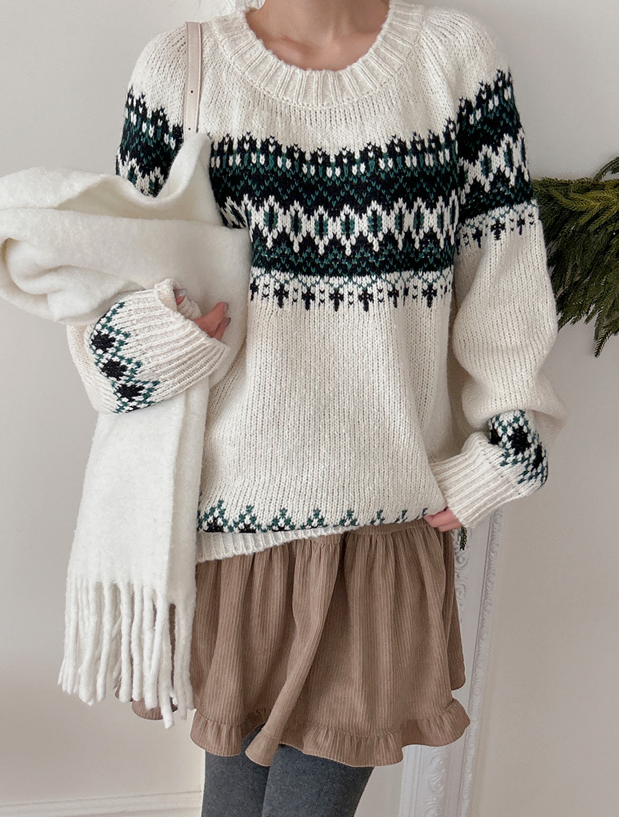 テデュール配色 ノルディックニット