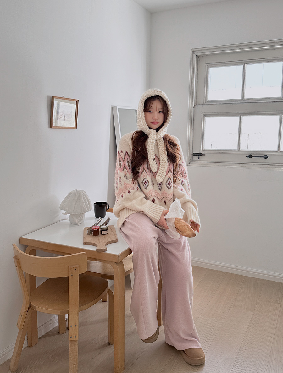 ベミュイゴルジ起毛切開 ロングウエストバンドパンツ