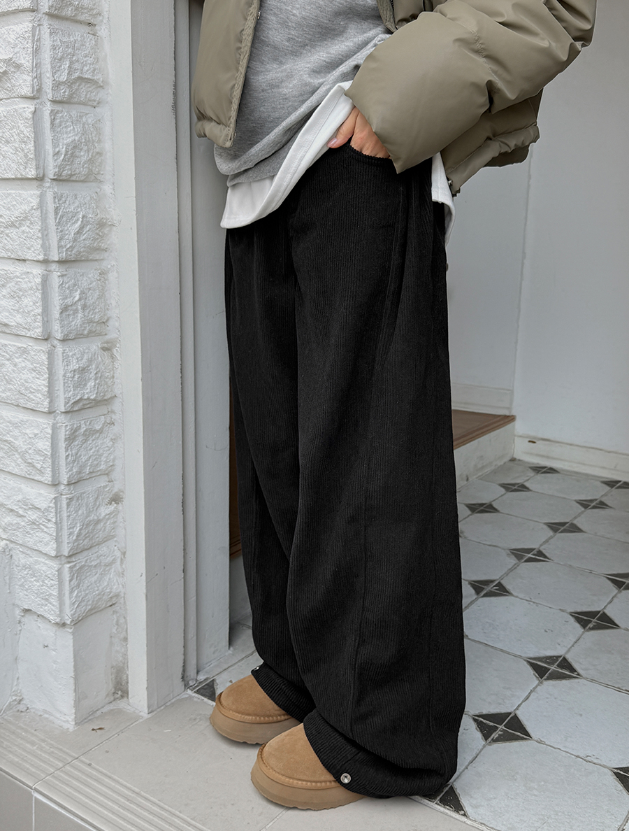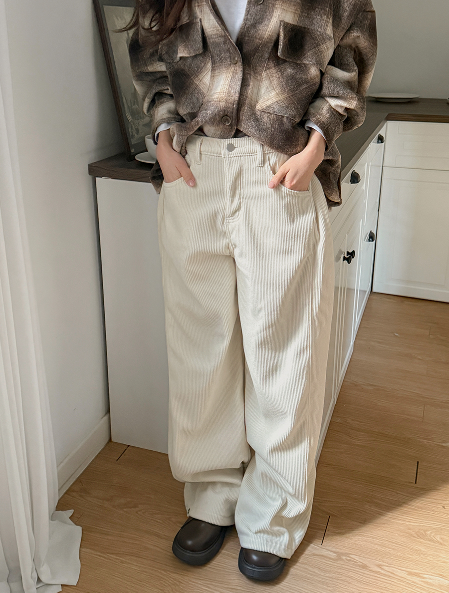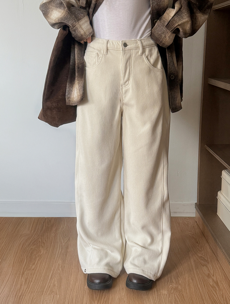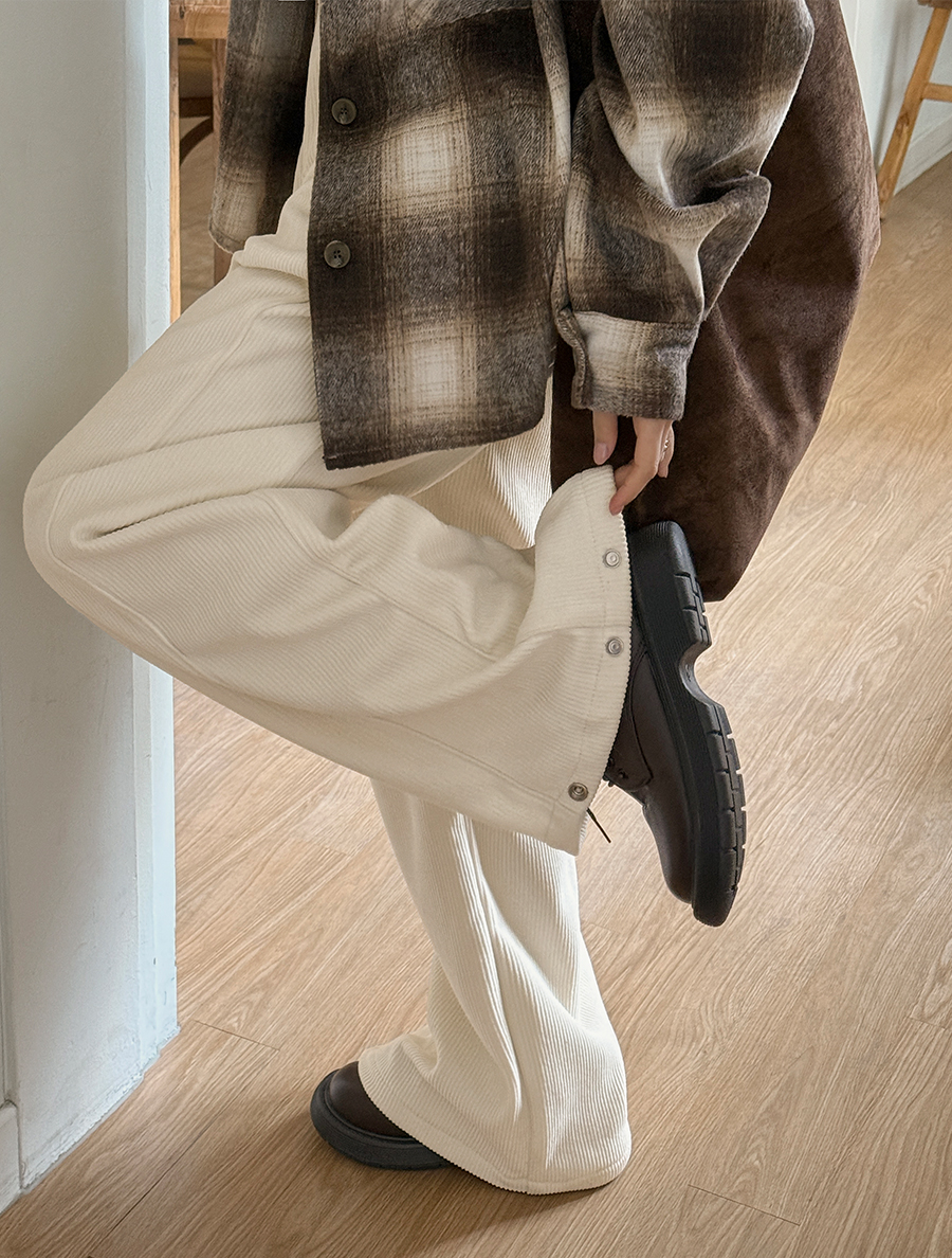 リノンブ長さ別コーデュロイ起毛切開ワイドパンツ