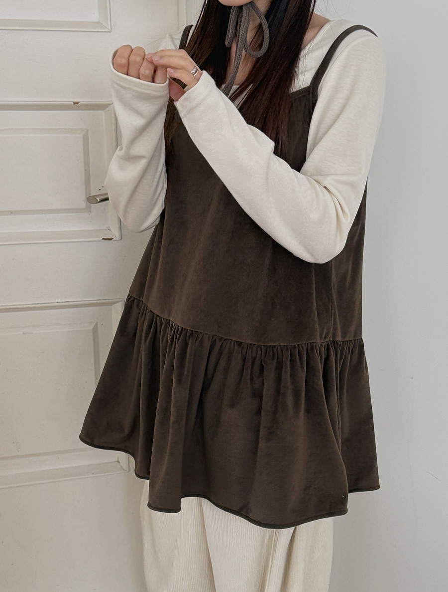 エンヌビーベルベットレイヤードシャーリングビスティエ