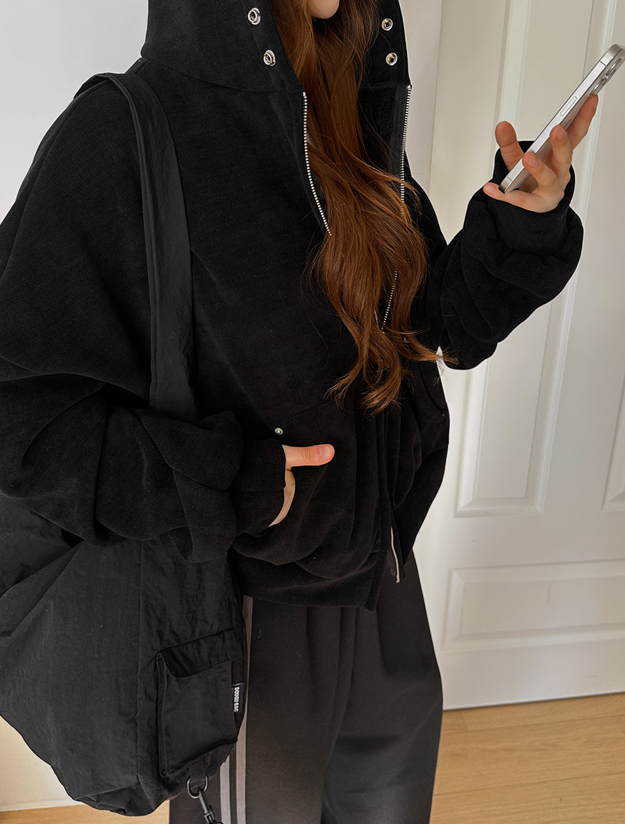 コエンパーコーデュロイダンブルツウェーフードジャンパ
