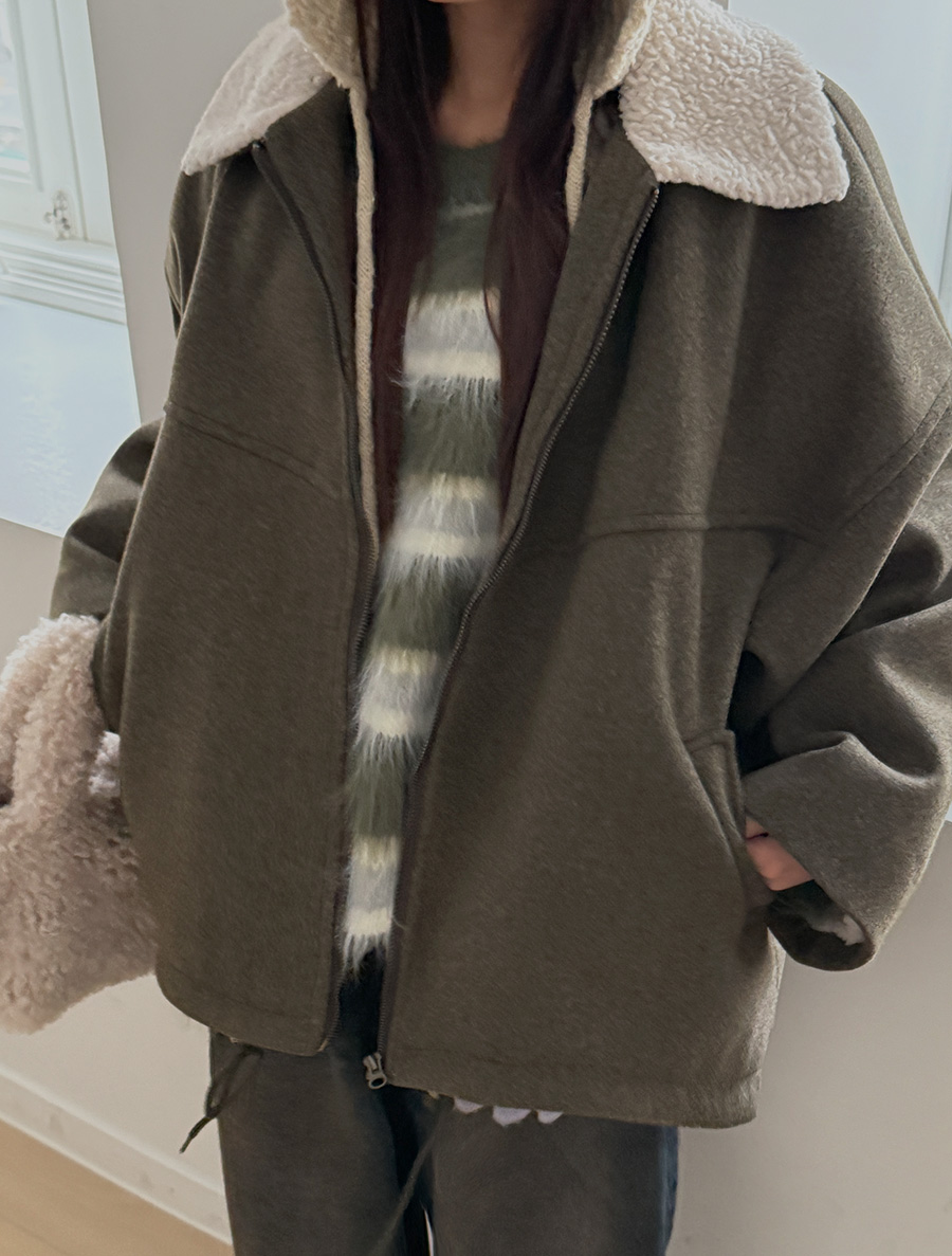 キューテブダンブルカラーストリングウールジャケット