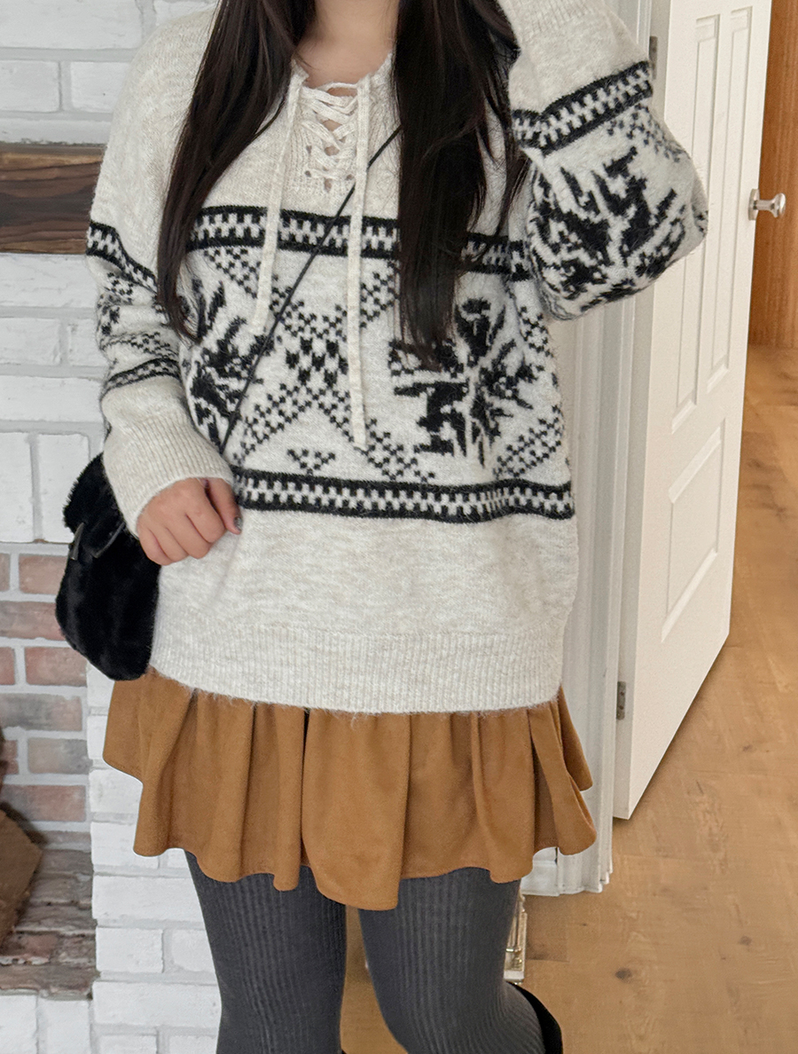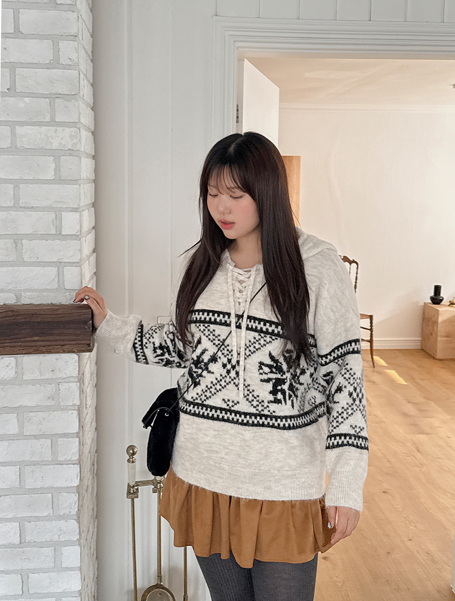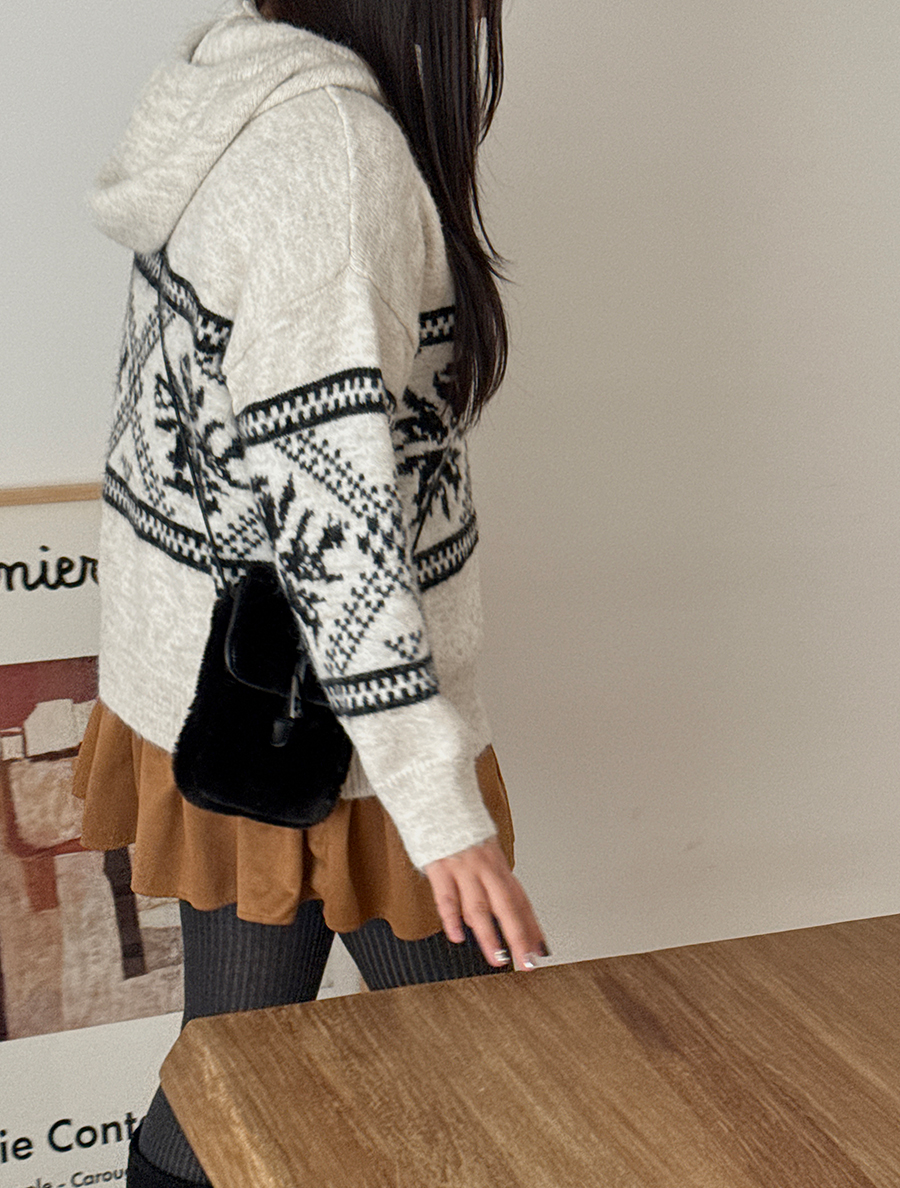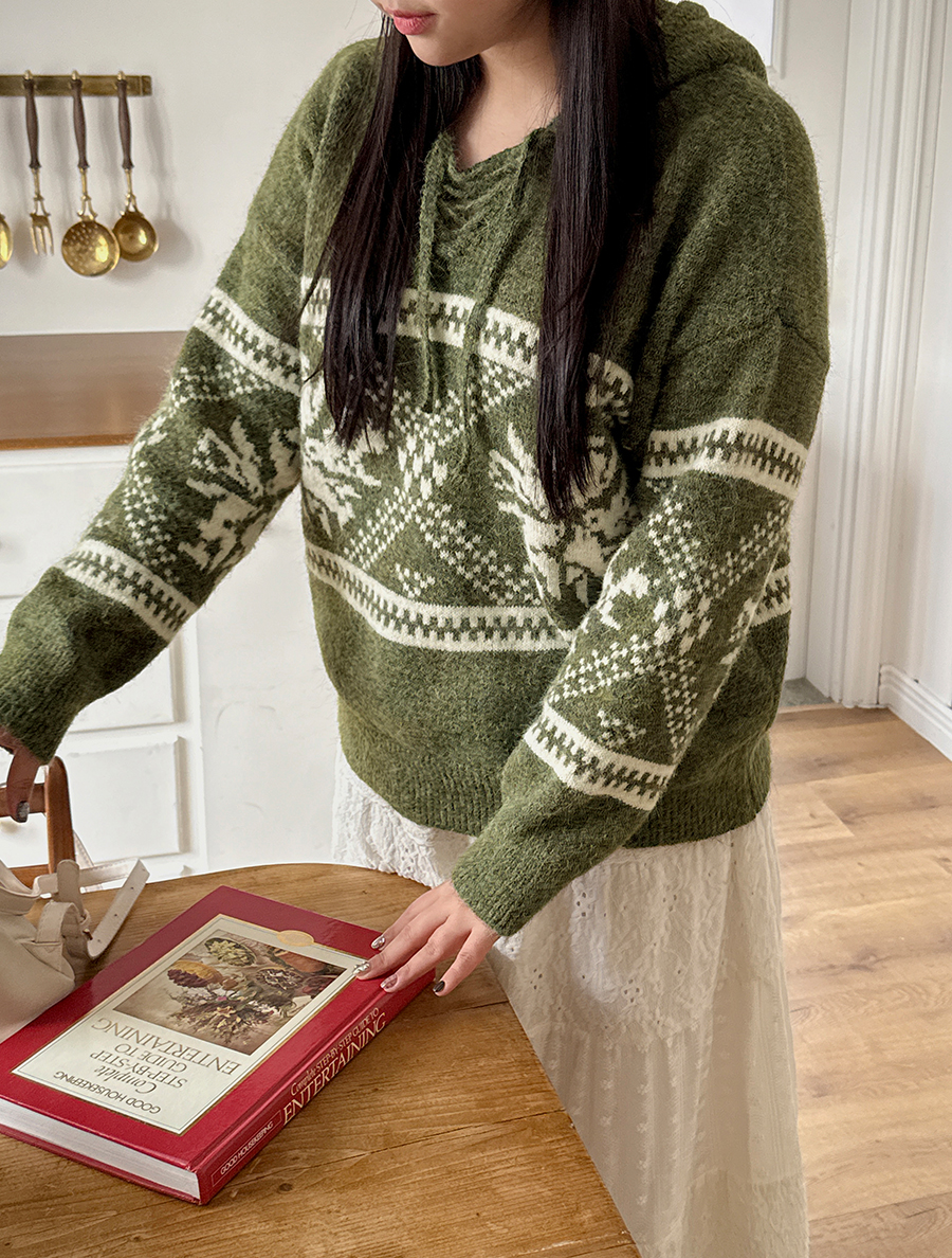 ティオンミノルディックウールフードニット