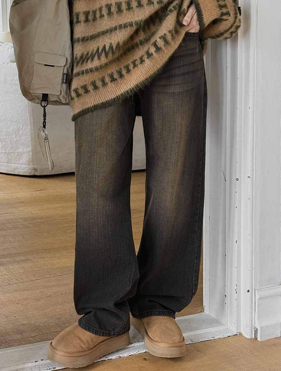 ミュウエンウォッシングセミワイドロングデニム