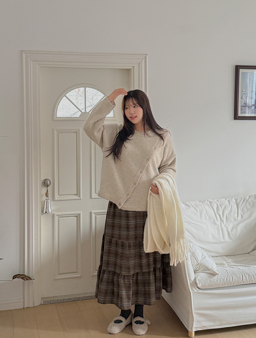メルミューオン 起毛 チェック カンカン ロングスカート