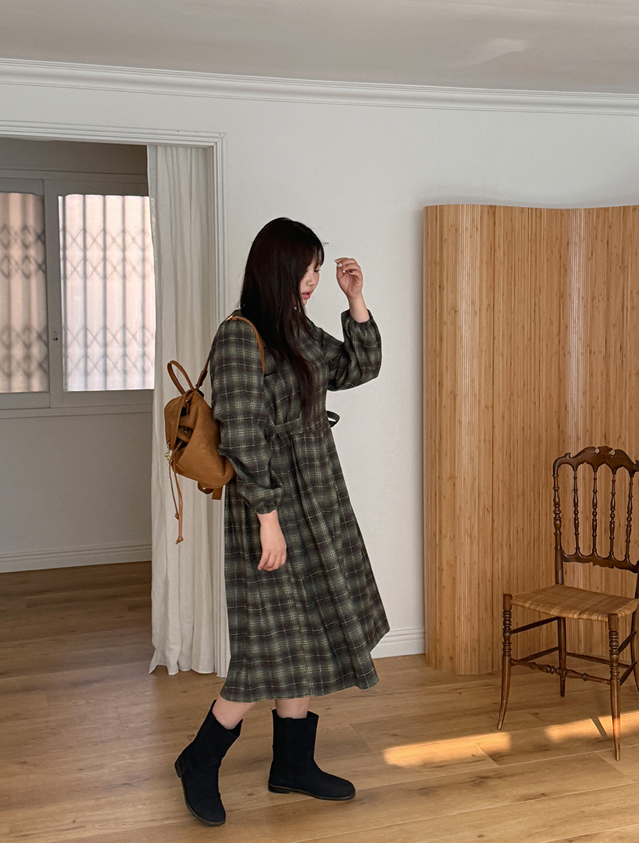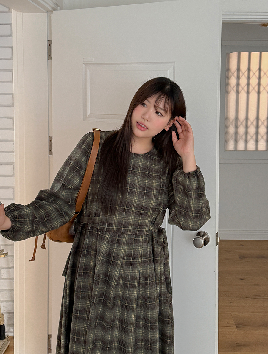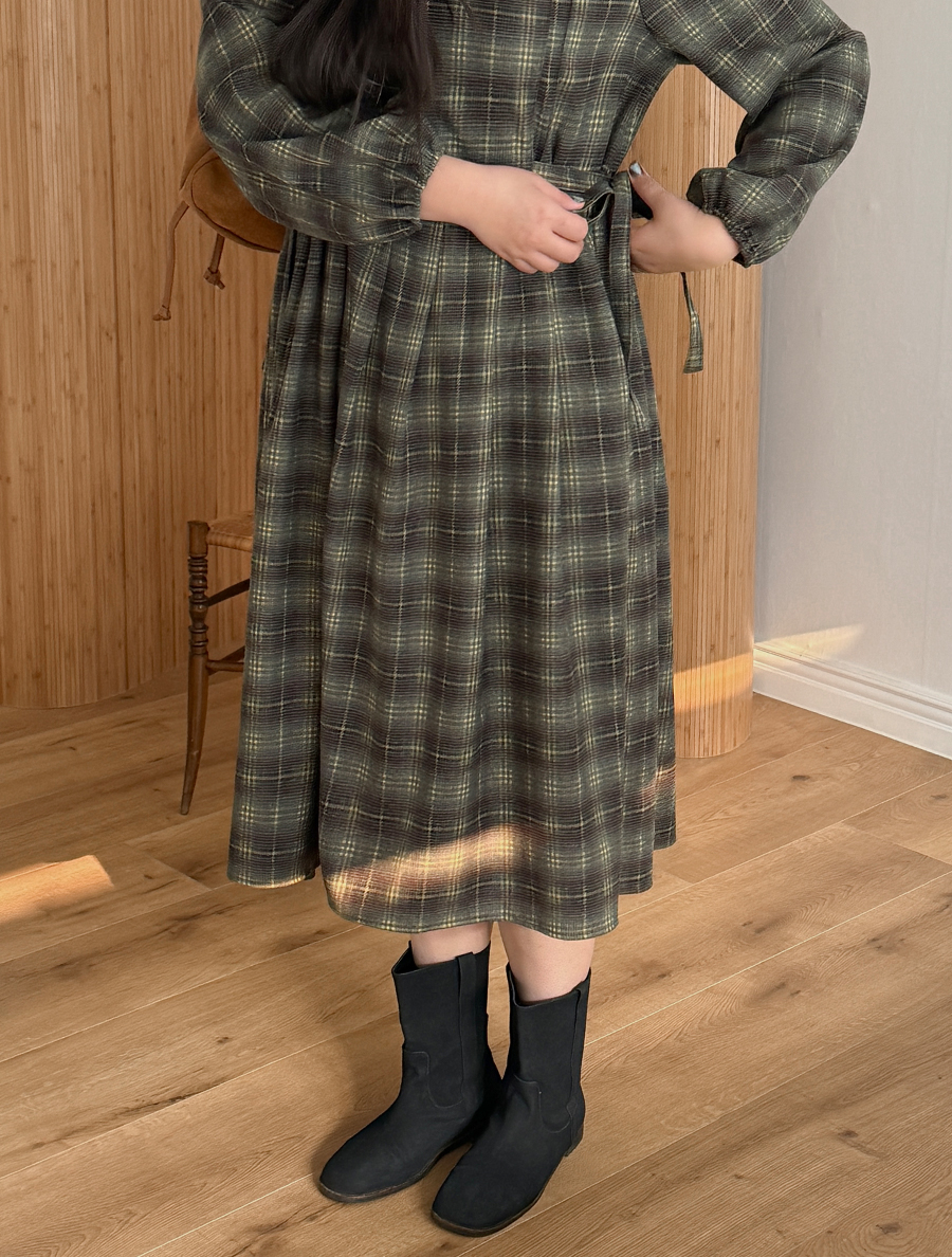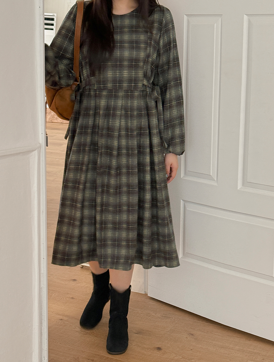 オンエットチェックリボンピンタックロングワンピース