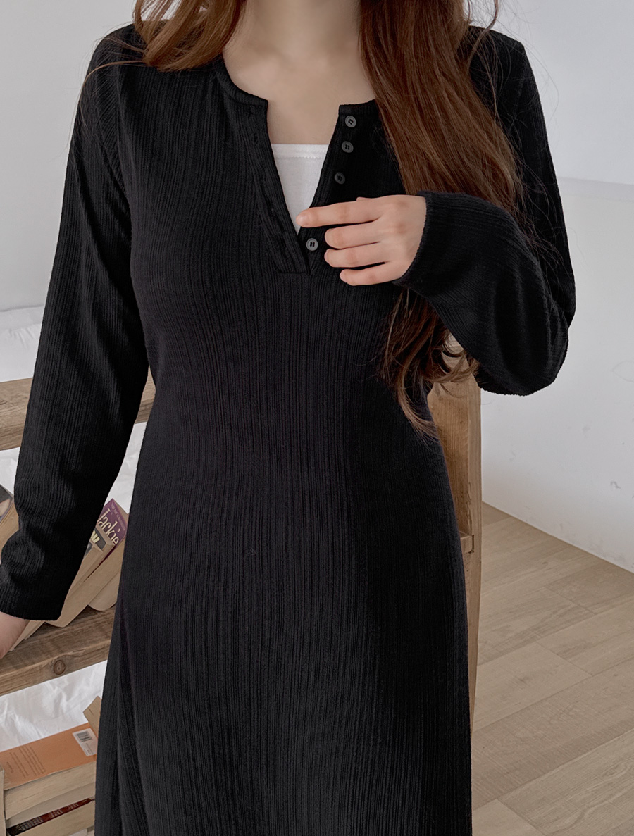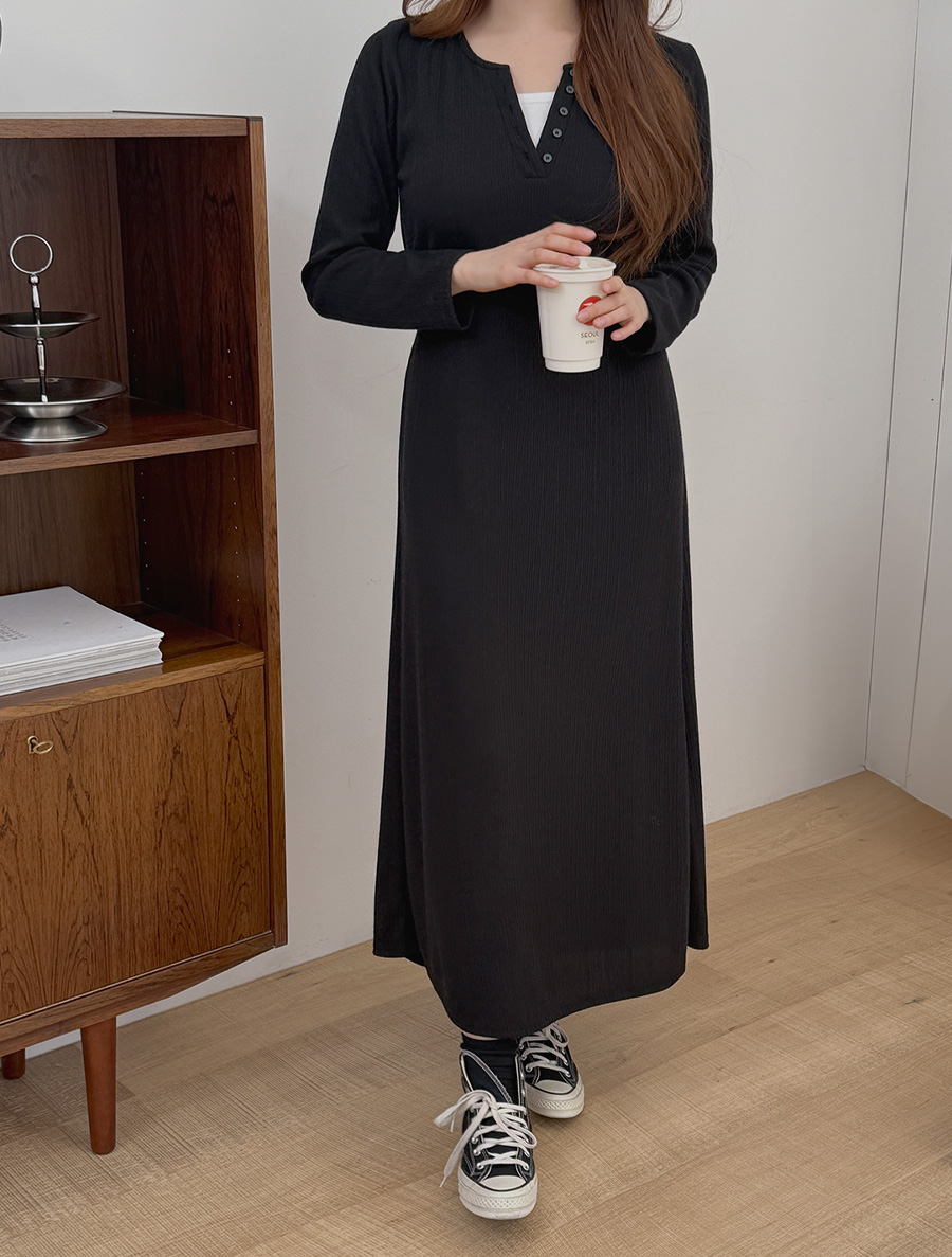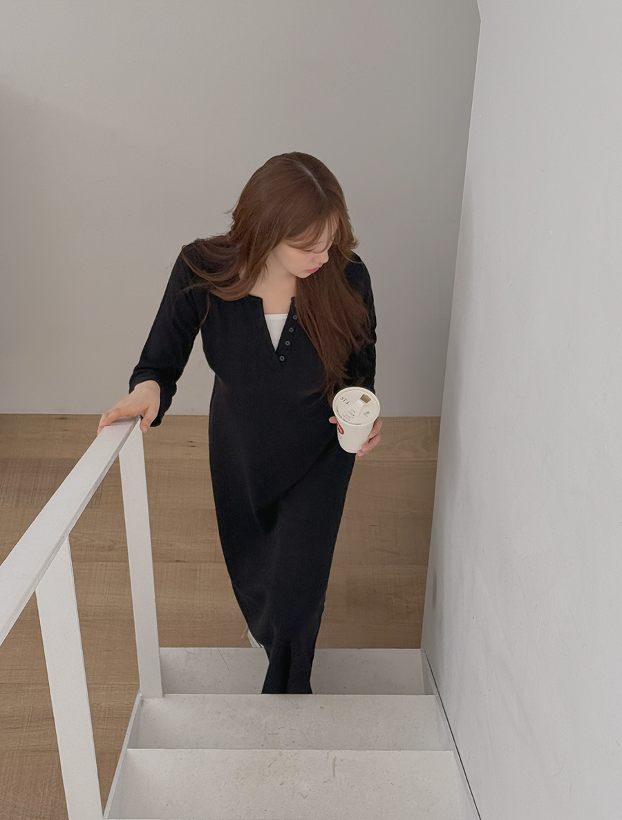 フューミンドゴルジ配色ボタンロングワンピース