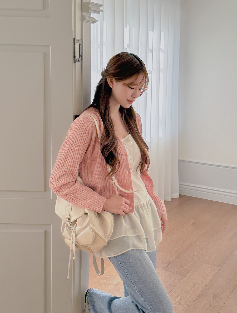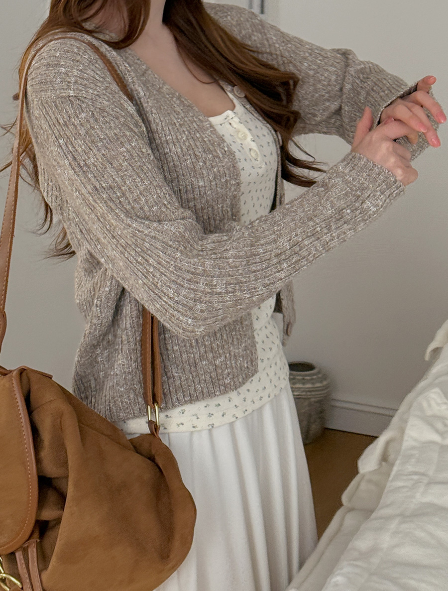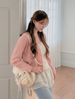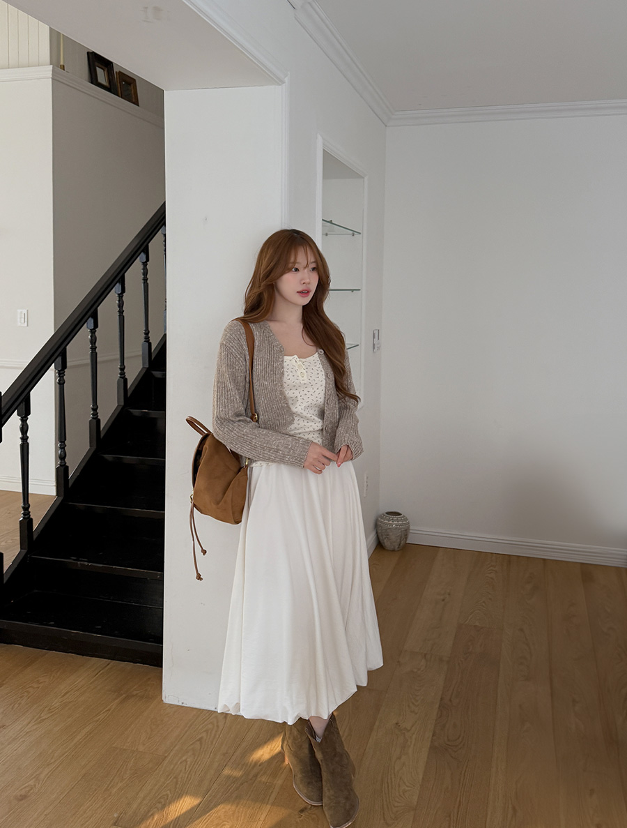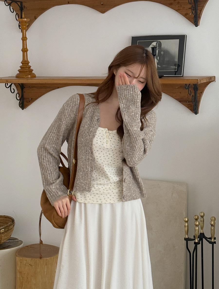 [EVELLET]デーベンVネックセミクロップニットカーディガン