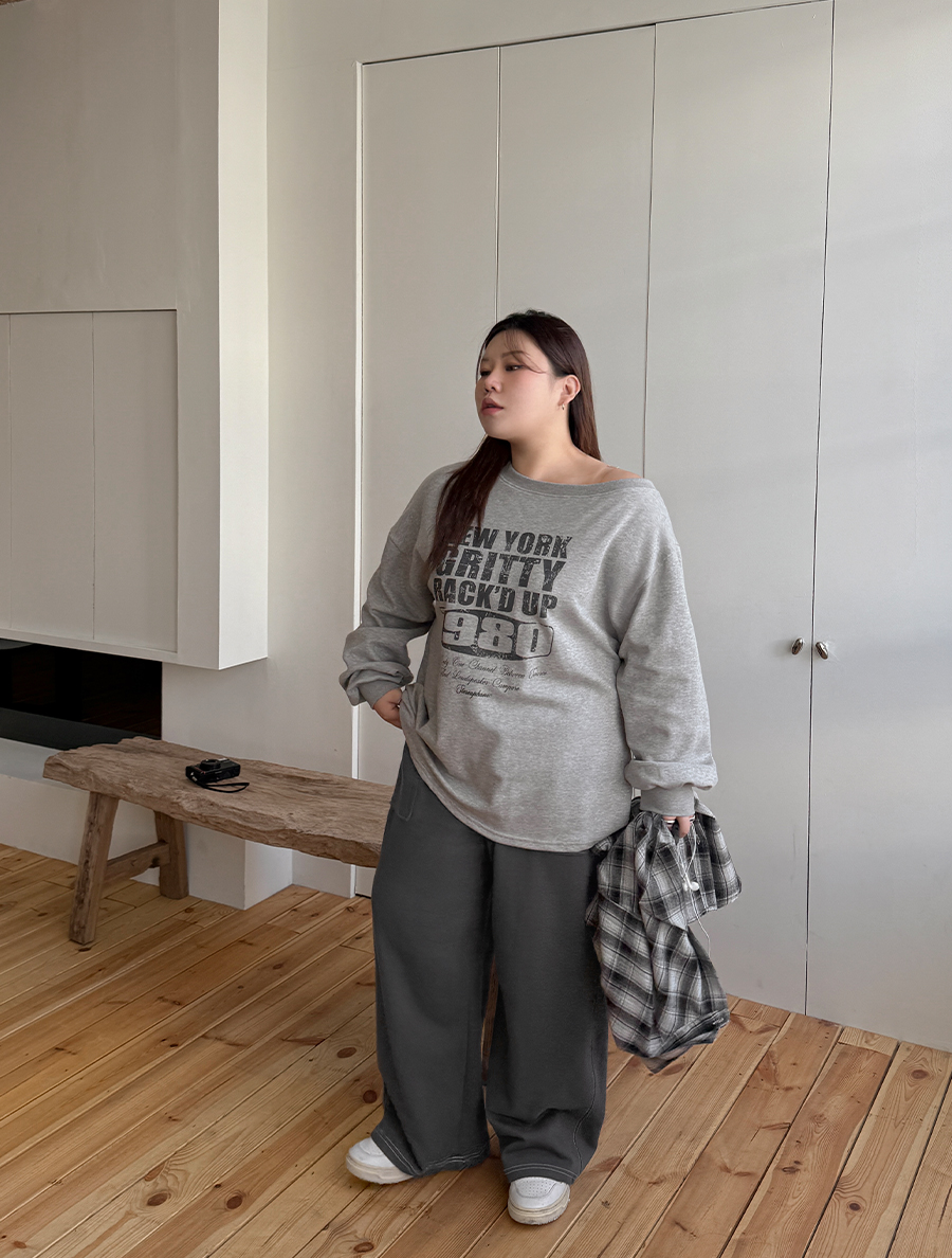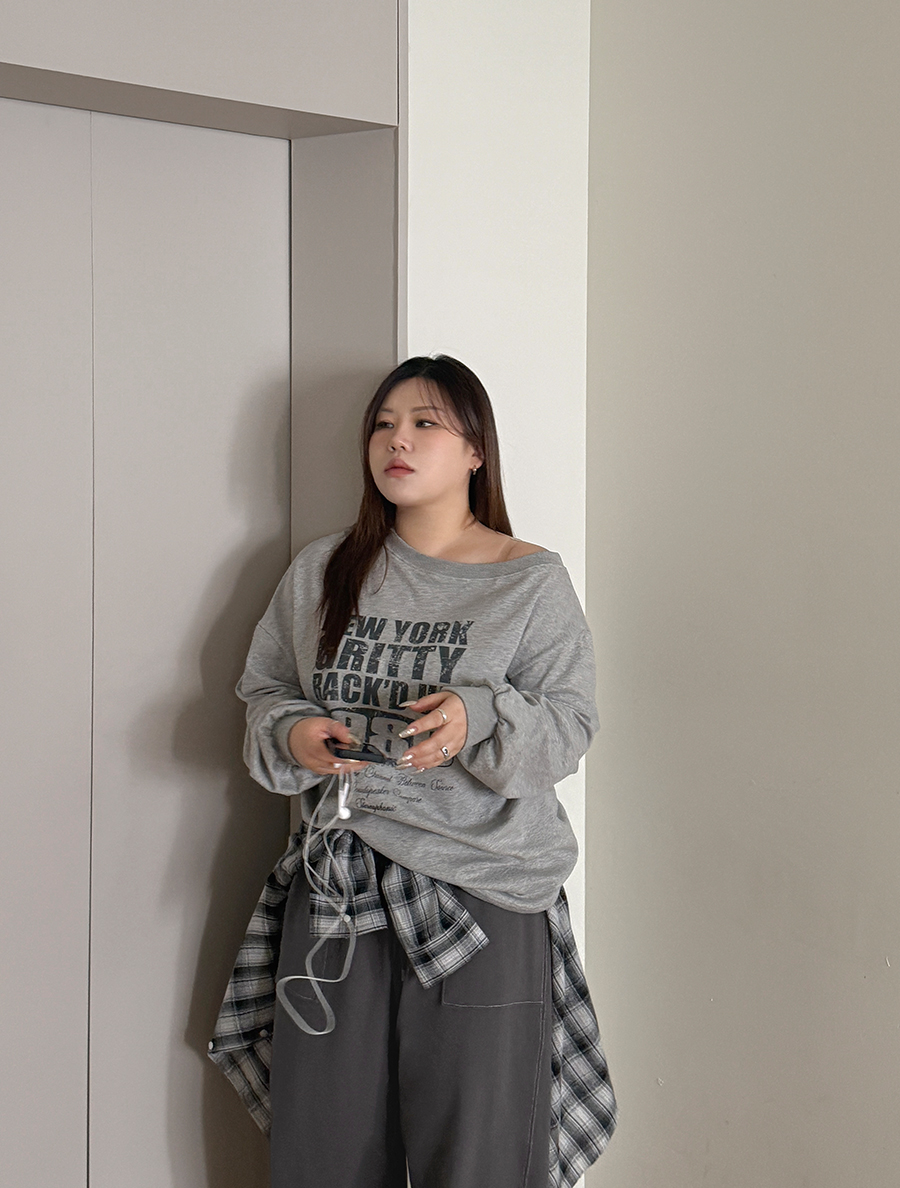 ティーモンフレタリングアンバランスオフショルダーティーシャツ