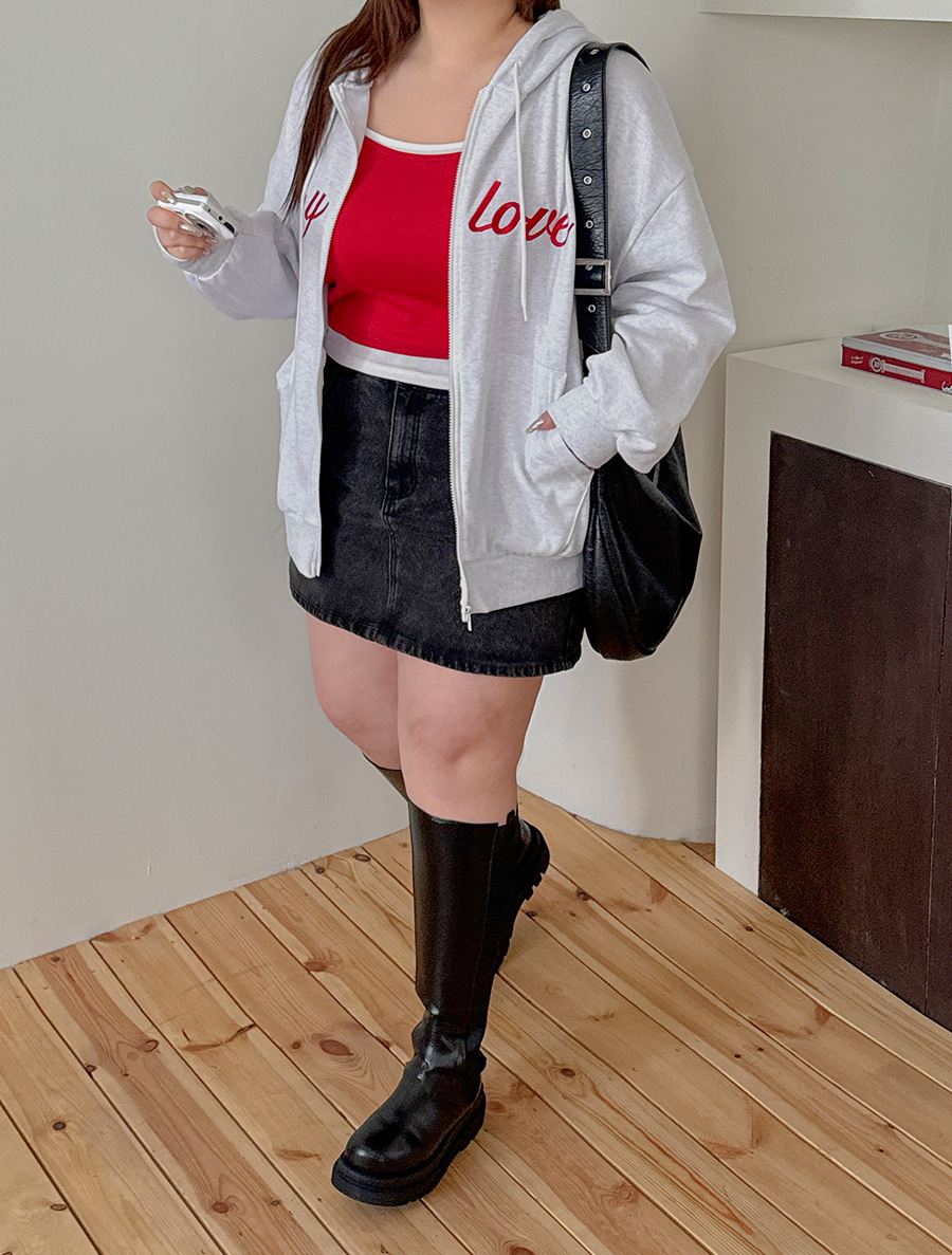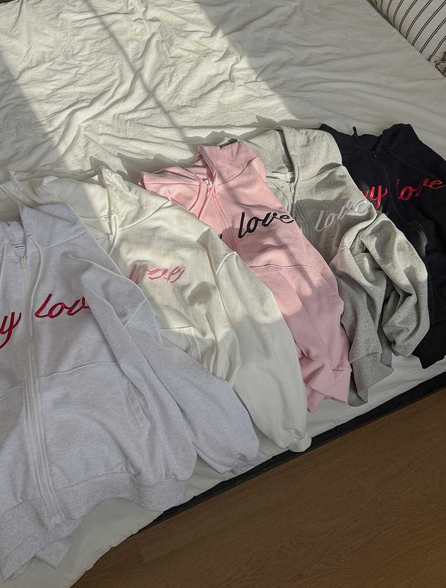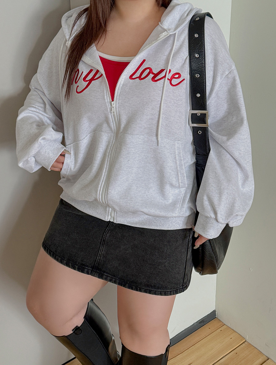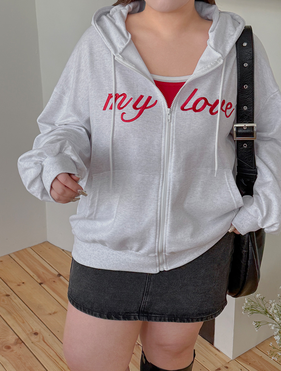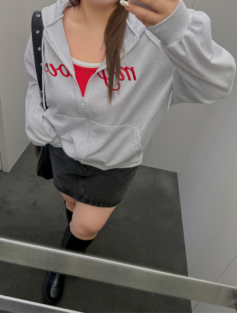 デュムティレタリング刺繍フードジップアップ