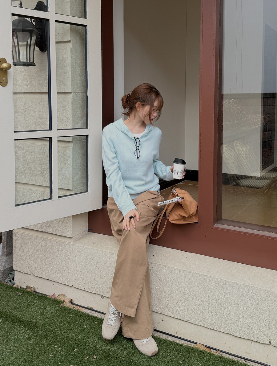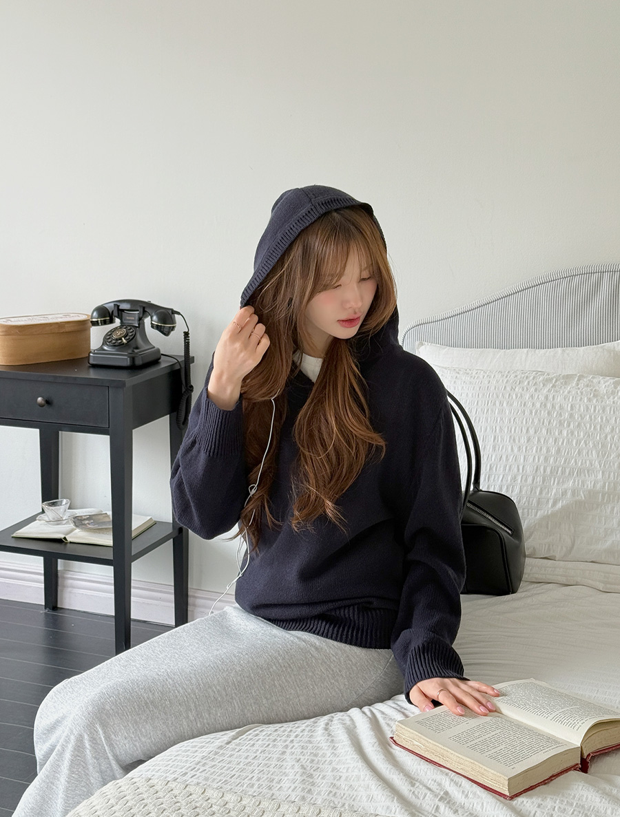 [EVELLET]トゥルーピーボタンフードニット