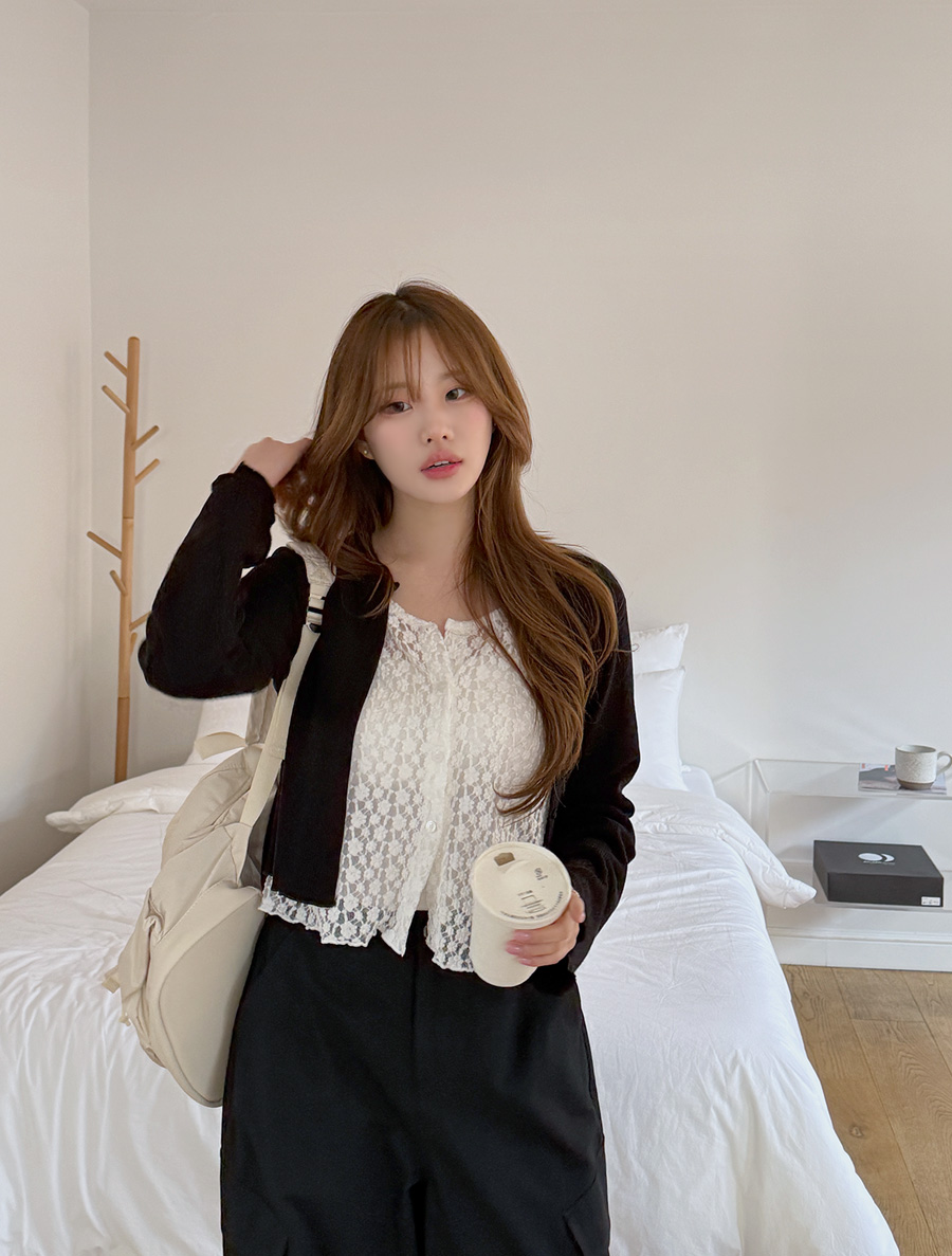 ミューメンフレースレイヤードボタンカーディガンティーシャツ