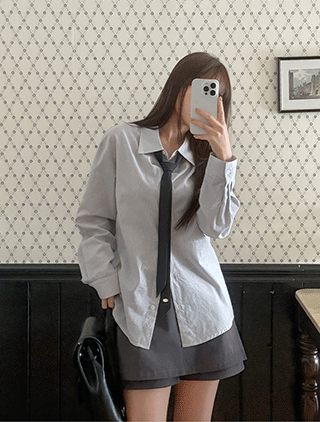 [EVELLET]テプレン配色タイSETスタイルルーズフィットシャツ