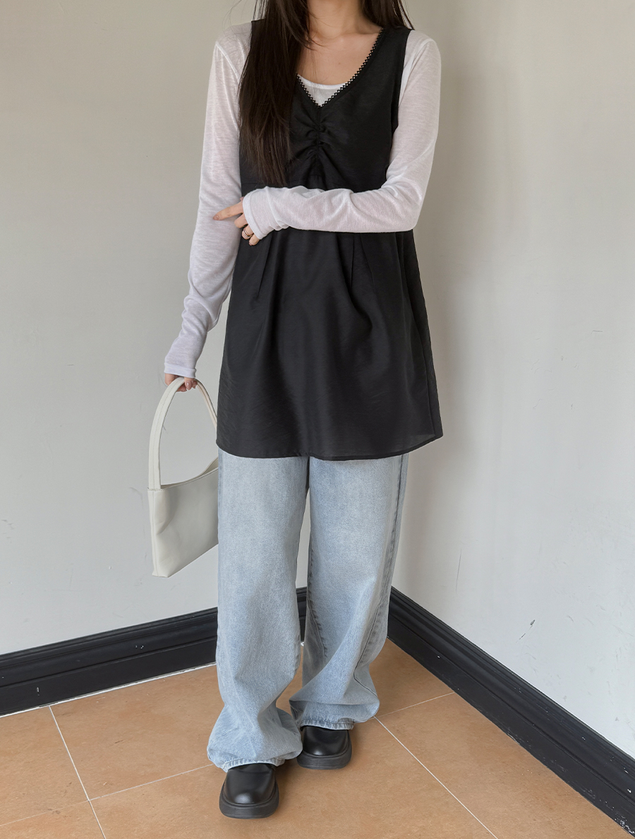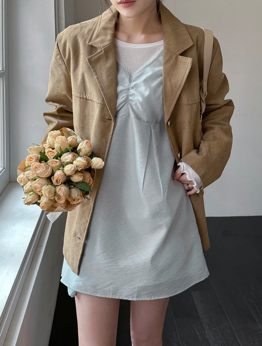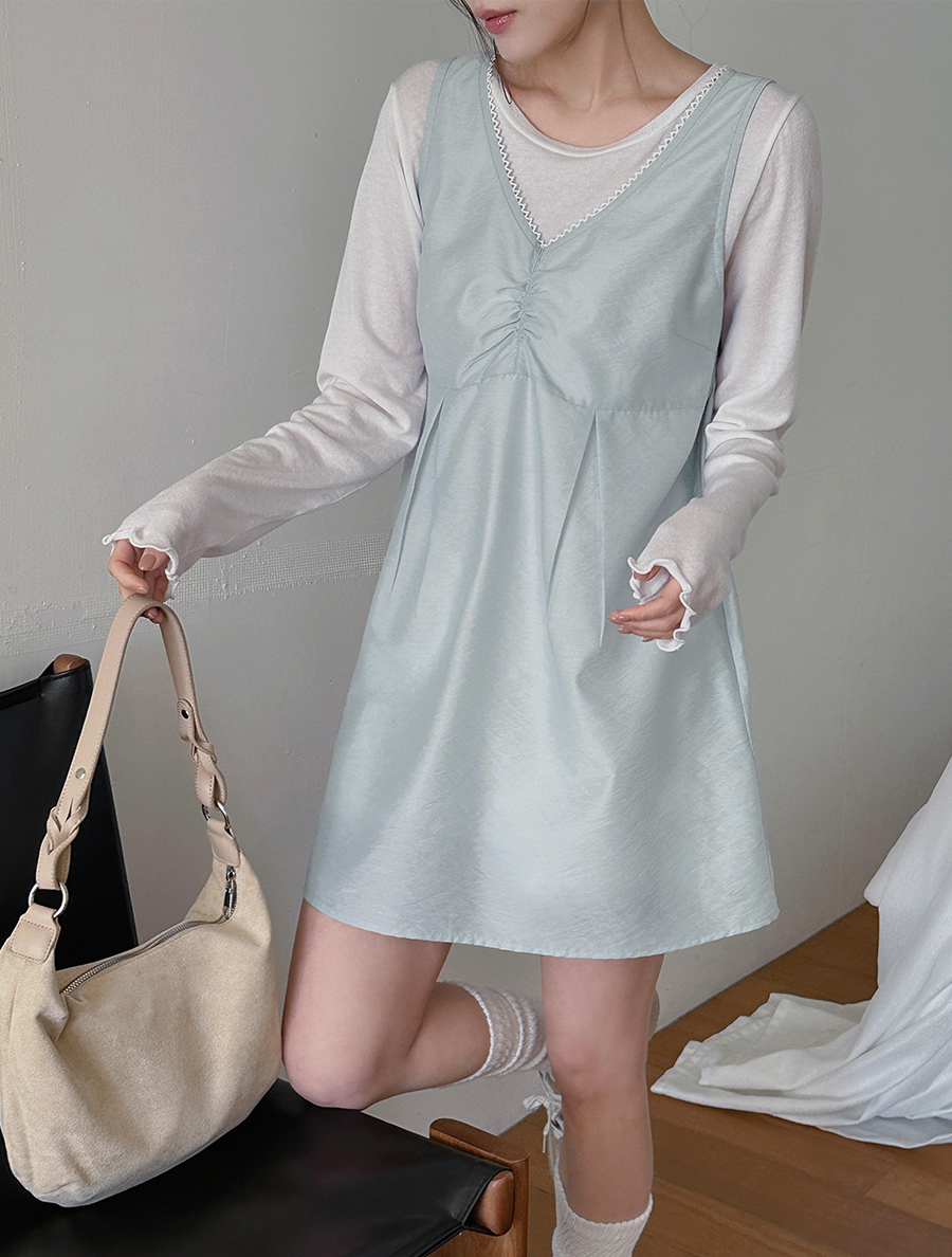 [EVELLET]ヘルディンレースシャーリングレイヤードミニワンピース