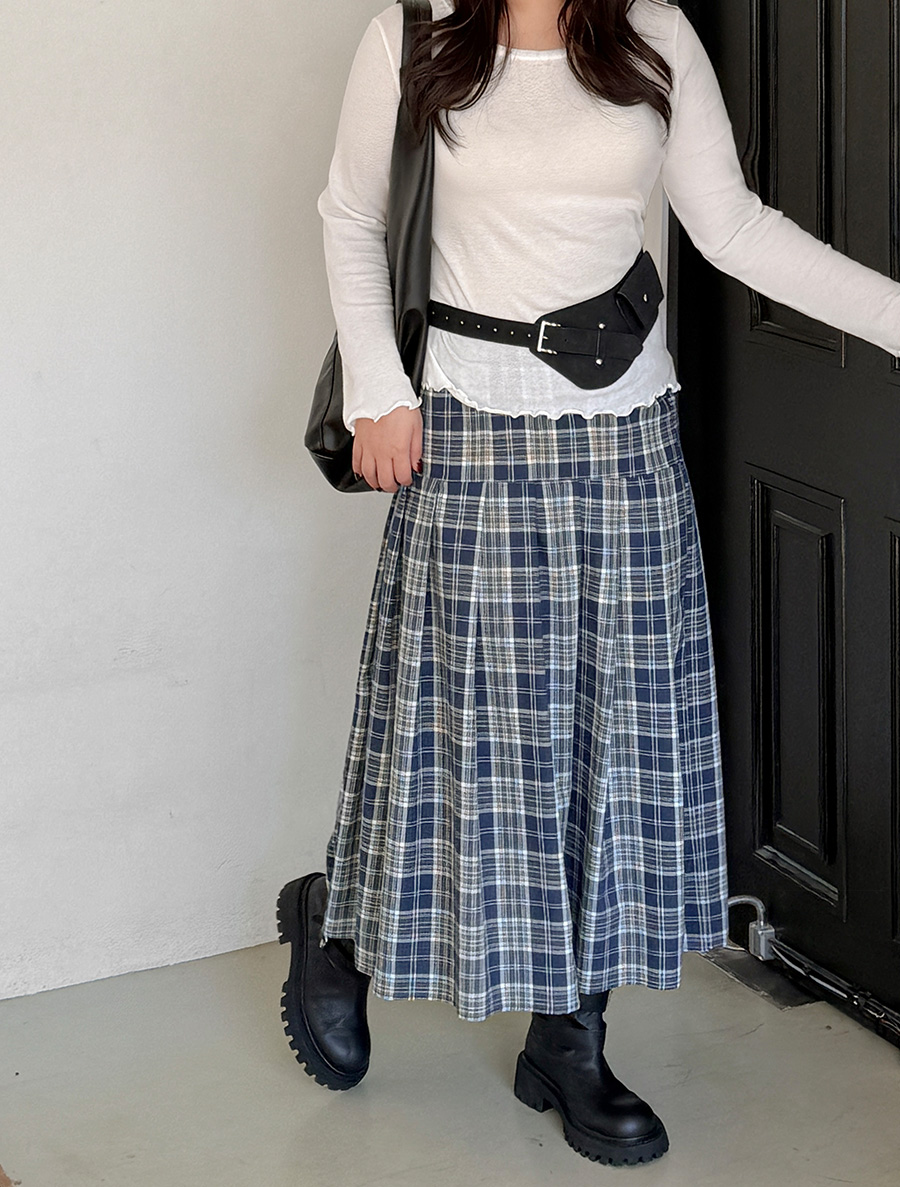 ニューフハ チェック プリッツ ロングスカート