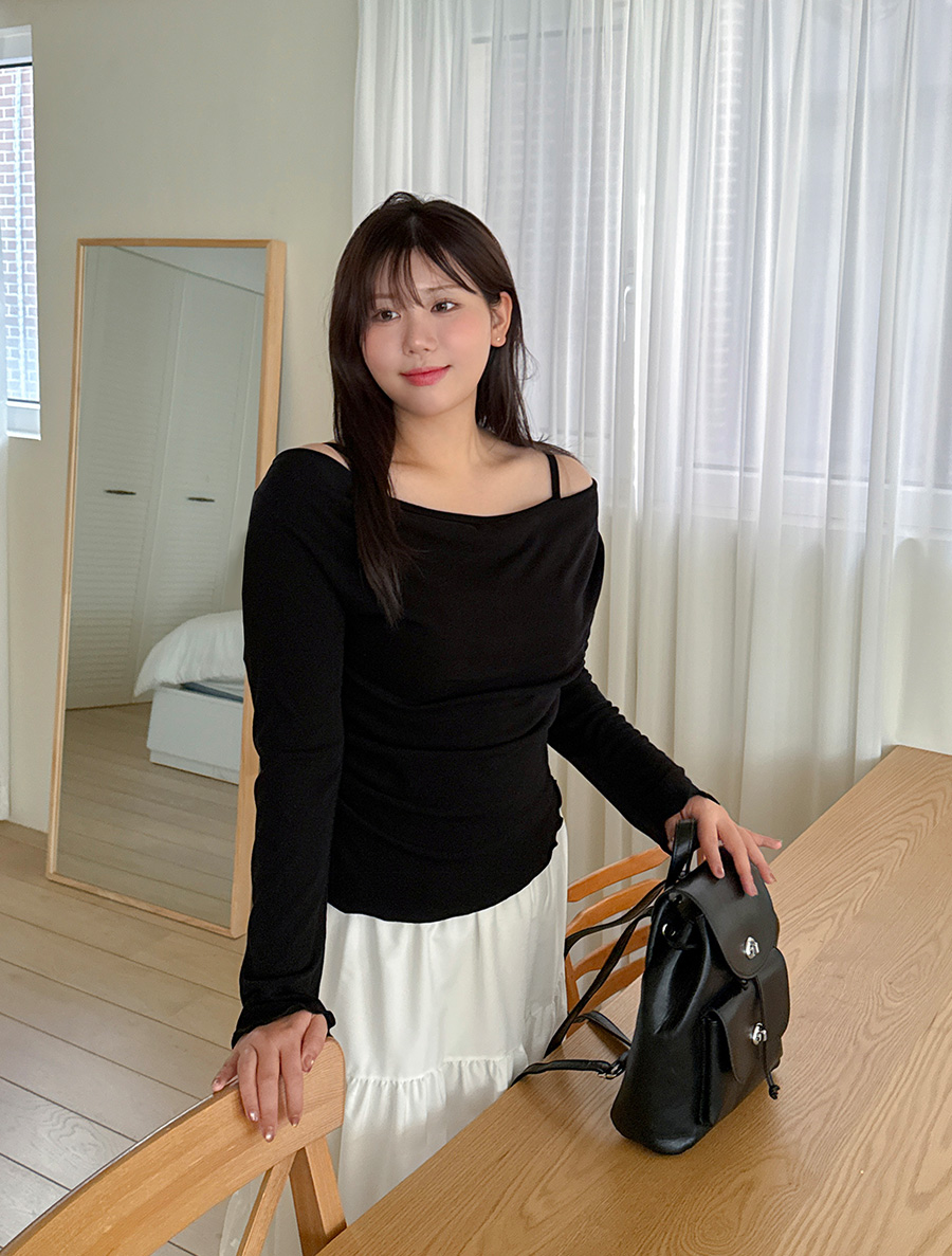 [EVELLET]ロムアホルターレイヤードオフショルダーティーシャツ