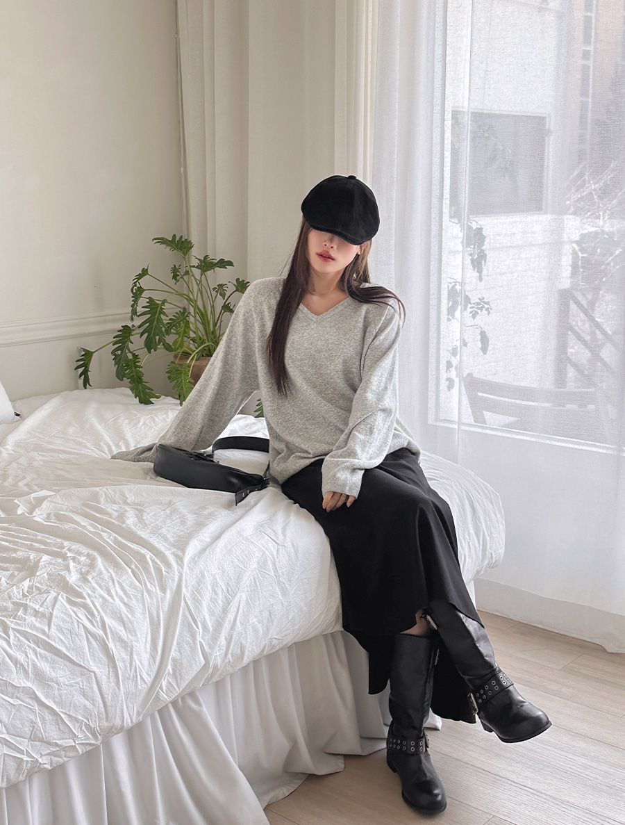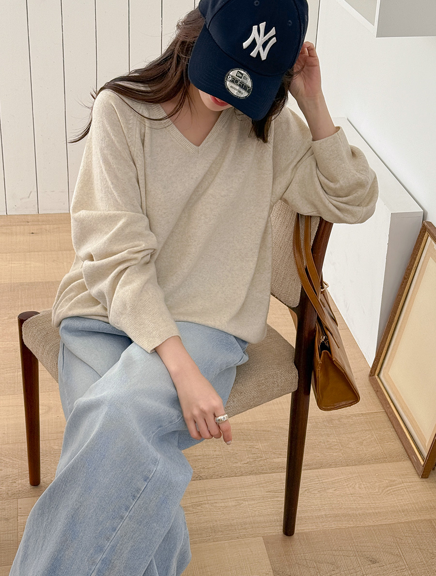 ルシベンウールベーシックブイネックニット