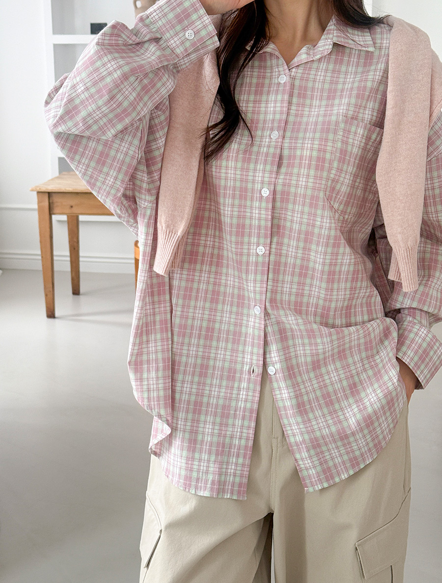 テアベルチェックカラーアンバランスシャツ