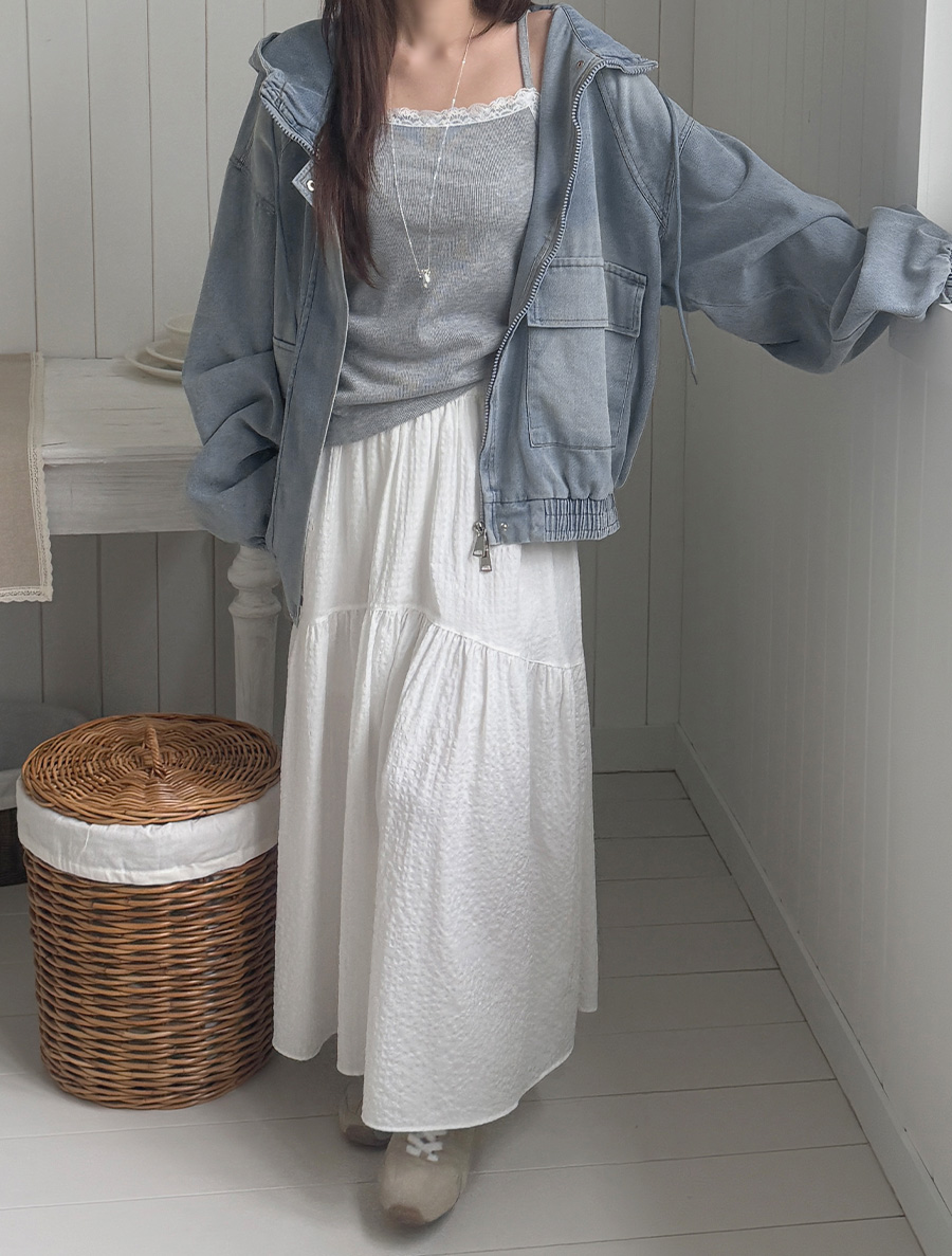 カアペシアサーカーフレアロングスカート