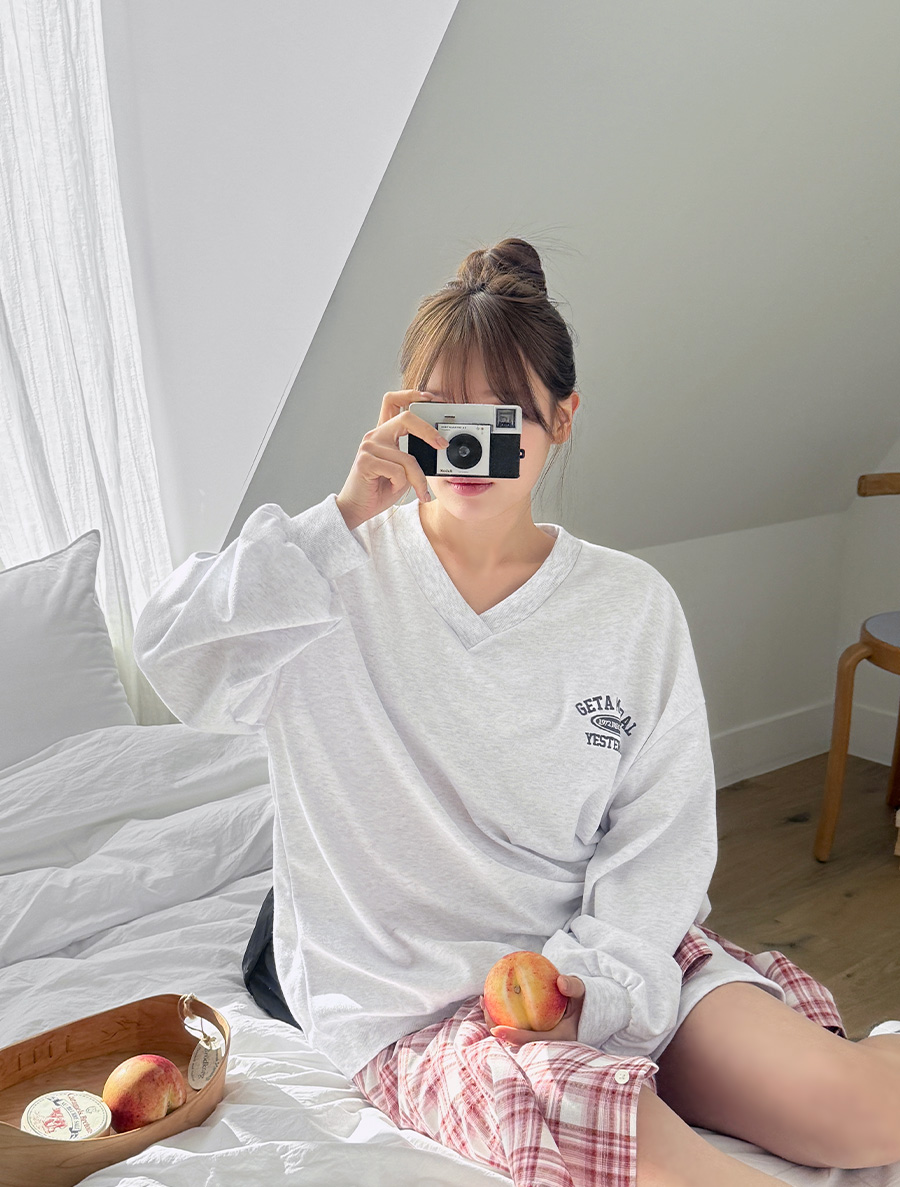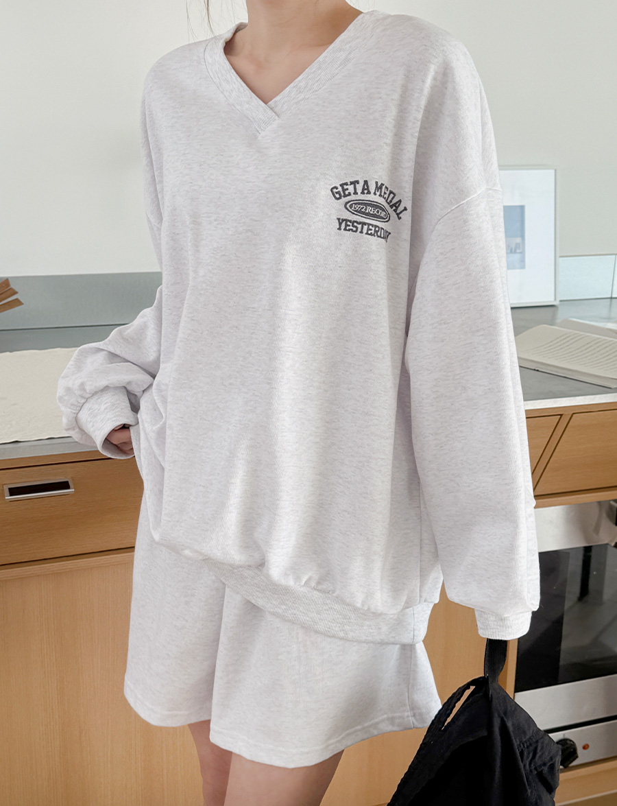 キュープ製 Vネックカットソー 4分丈パンツ SET